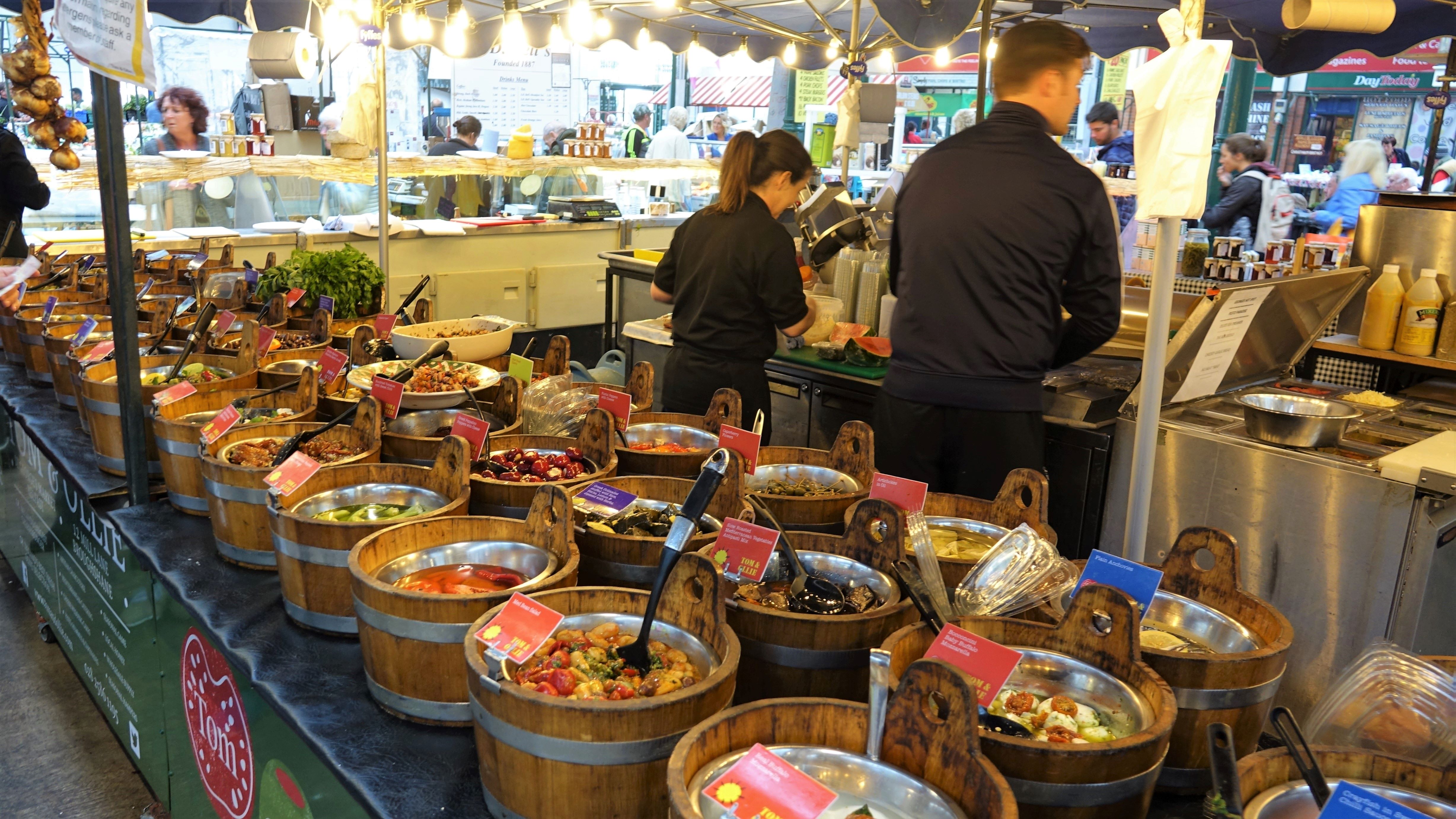 Im Reiseführer wird ein Besuch des „St. George’s Market“ unbedingt empfohlen. Da die historische Markthalle aus dem 19. Jh. ein klein wenig abseits der Besichtigungspfade durch die Innenstadt liegt, machen wir uns als erstes in ihre Richtung auf. 2014 wurde sie von der „National Association of British Market Authorities“ zur besten Markthalle des vereinigten Königreiches gekürt. Sie ist am Freitag, Samstag und Sonntag geöffnet.