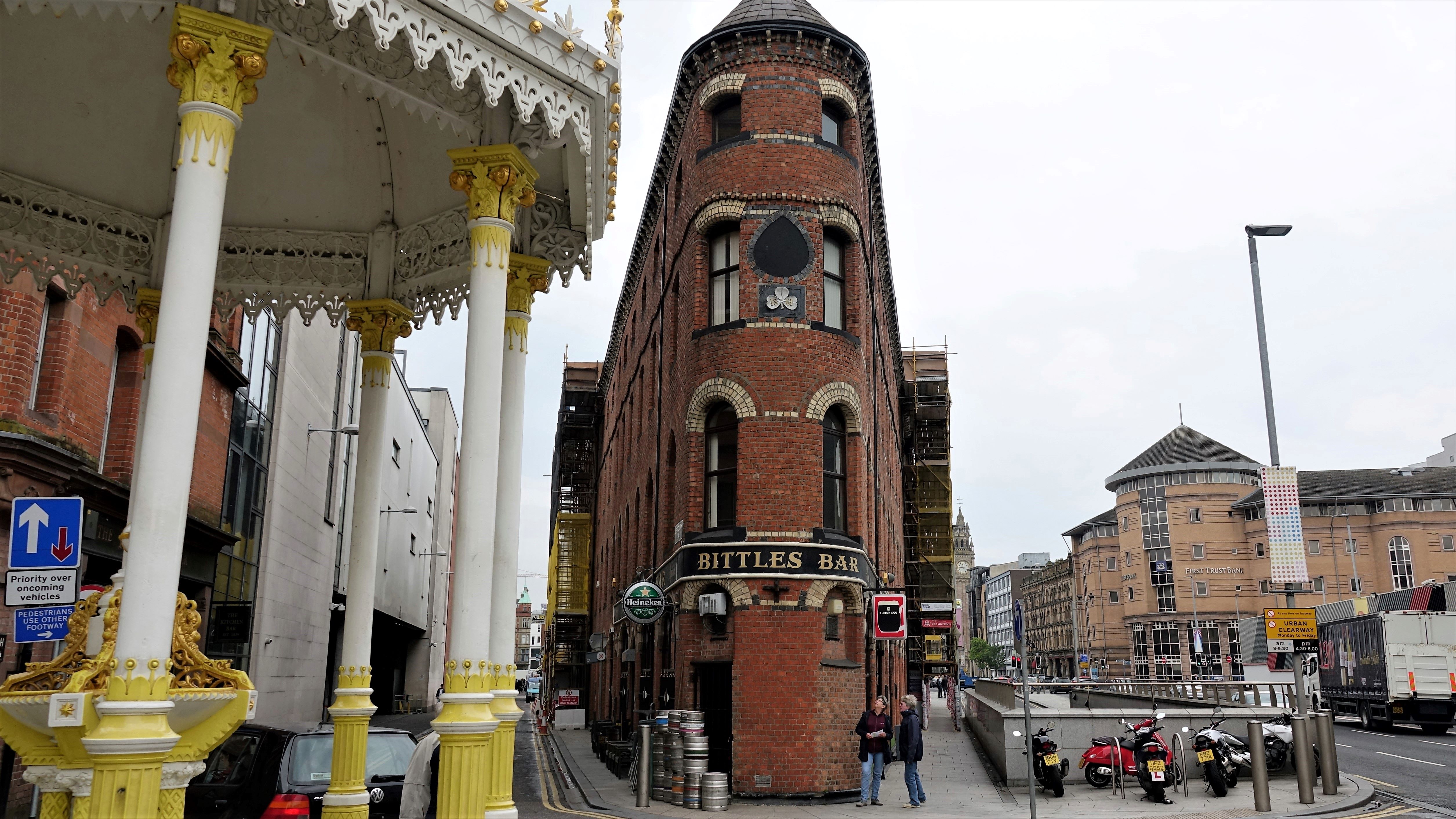 Nachdem wir den Markt verlassen haben, laufen wir auf der Victoria Street nordwärts, vorbei an den „Royal Courts of Justice“, die zwischen 1928 und 1933 bewusst in einem traditionellen Architekturstil erbaut wurden, um die Würde des Gesetzes widerzuspiegeln. Ein Stückchen weiter am Victoria Square, erreichen wir die „Bittles Bar“, eine urige Kneipe mit dreieckigen Barraum. Aber auch für ein Bier ist es noch zu früh.