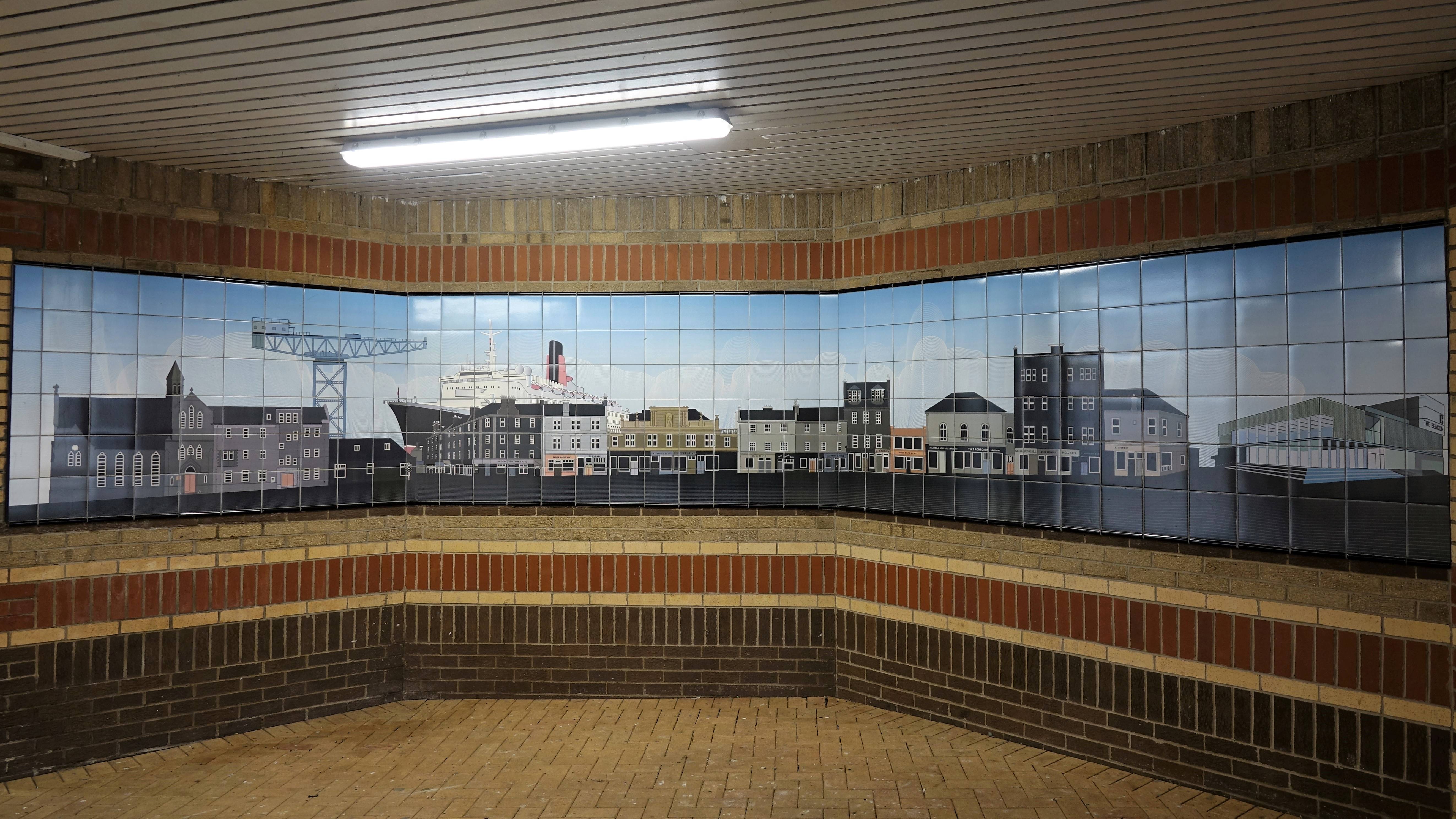In einer Unterführung finden wir ein nettes Mosaik mit der Skyline von dem Ort. Da die oberen Kacheln hellblau sind, scheint es hier auch manchmal schöneres Wetter zu geben. Heute nicht, also durchnässt zurück aufs Schiff. Müßiggang kann auch ganz nett sein, zumal uns heute Abend das Selection Restaurant noch zu einem sechsgängigen Whisky-Menü erwartet.