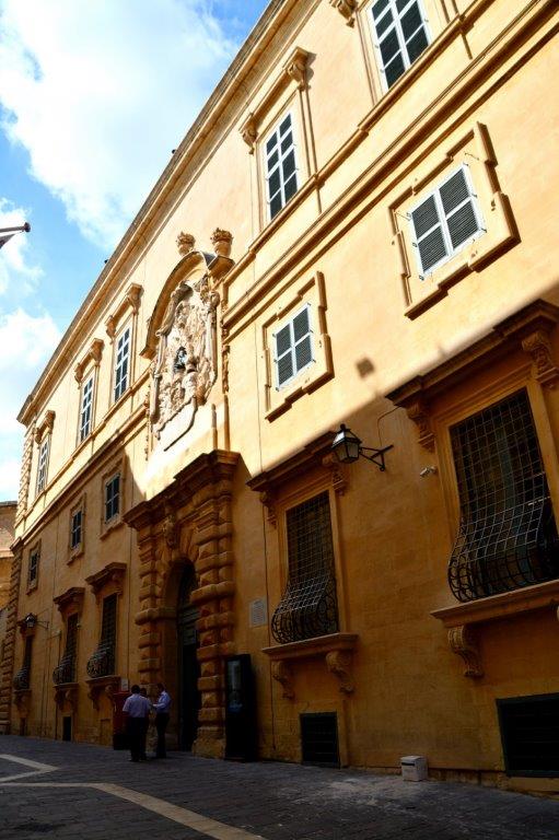 In diesem barocken Prachtbau waren einst die Johanniter mit italienischem Zungenschlag untergebracht. Es ist ein insgesamt vielseitiges Gebäude. Nach der Vertreibung der Ritter Ende des 18. Jahrhunderts durch die napoleonischen Truppen diente es als militärisches Hauptquartier, Offiziersmesse, Museum, Kunstschule, Gericht, Hauptpostamt sowie für verschiedene öffentliche Ämter. Allgemein erkannten wir, dass in den uralten Gebäuden oftmals Institutionen untergebracht waren.