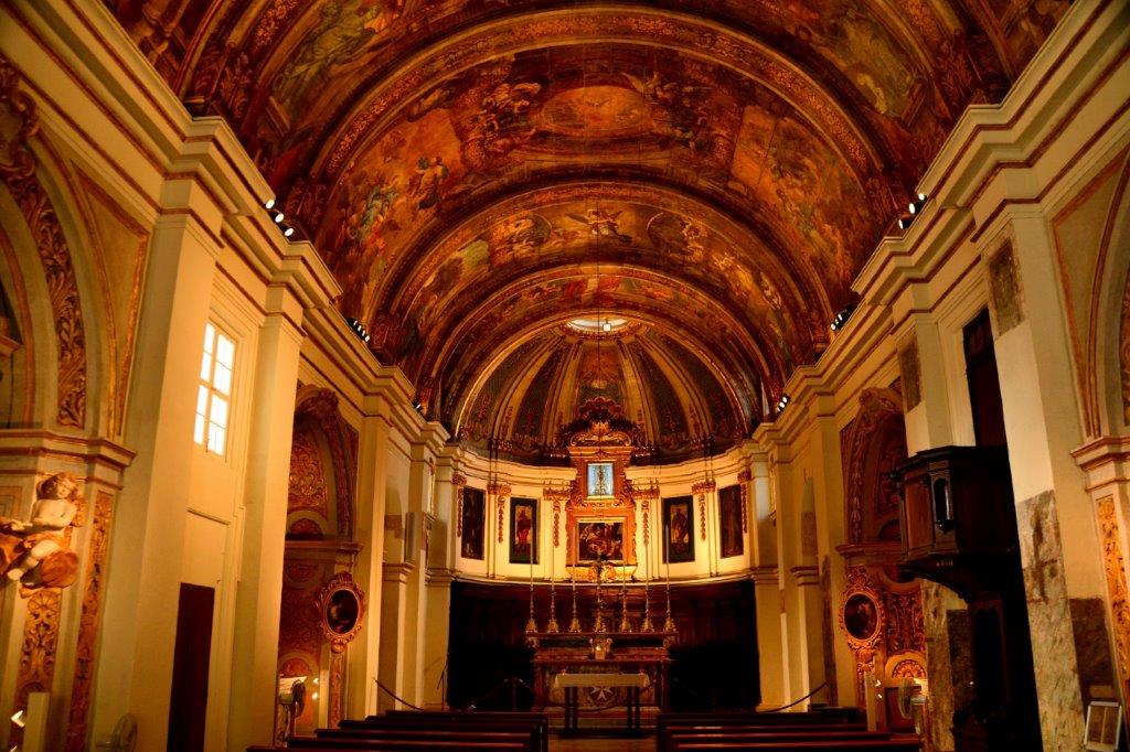 Mehr Glück hatten wir mit der alten Kirche der Jesuiten mit einem prächtigen barocken Innenraum in der Hauptkirche und einer ebenso aufwendigen, in Restaurierung befindlichen Kapelle.