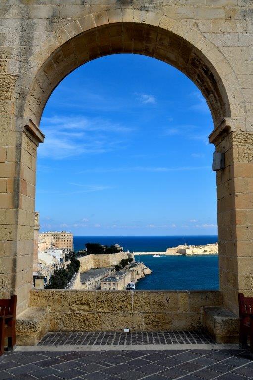 das Frühstück hinter uns gebracht und auf ins Gewimmel. Mit dem Fahrstuhl fuhren wir in die „Oberstadt“ (P.P. € 1,--; von oben nach unten gratis) zu den Upper Barrakka Gardens, eine Parkanlage, deren Vorgängerin bereits Mitte des 17. Jahrhunderts von den italienischen Ordensrittern angelegt worden war. Aus dieser Zeit stammt der einst überdachte doppelte Bogengang.
