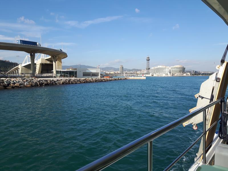 Das Boot verlässt den Hafen und fährt an dem kleinen Leuchtturm vorbei in Richtung offenes Meer und nach der Kurve liegt die Sol mir gegenüber.