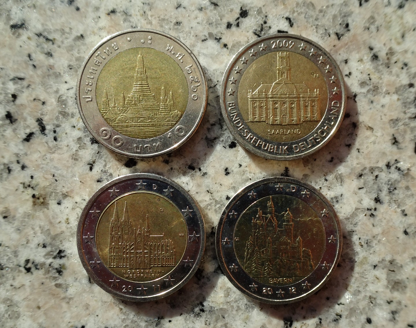 Es gibt übrigens auch Leute, die sammeln eher schlechtes Karma mit Münzgeld, indem sie hier 10 Baht-Münzen (30 Cent) sammeln und versuchen, sie zuhause als 2 €-Stücke in Umlauf zu bringen. Die Ähnlichkeit ist wirklich groß und der Gewinn riesig.
