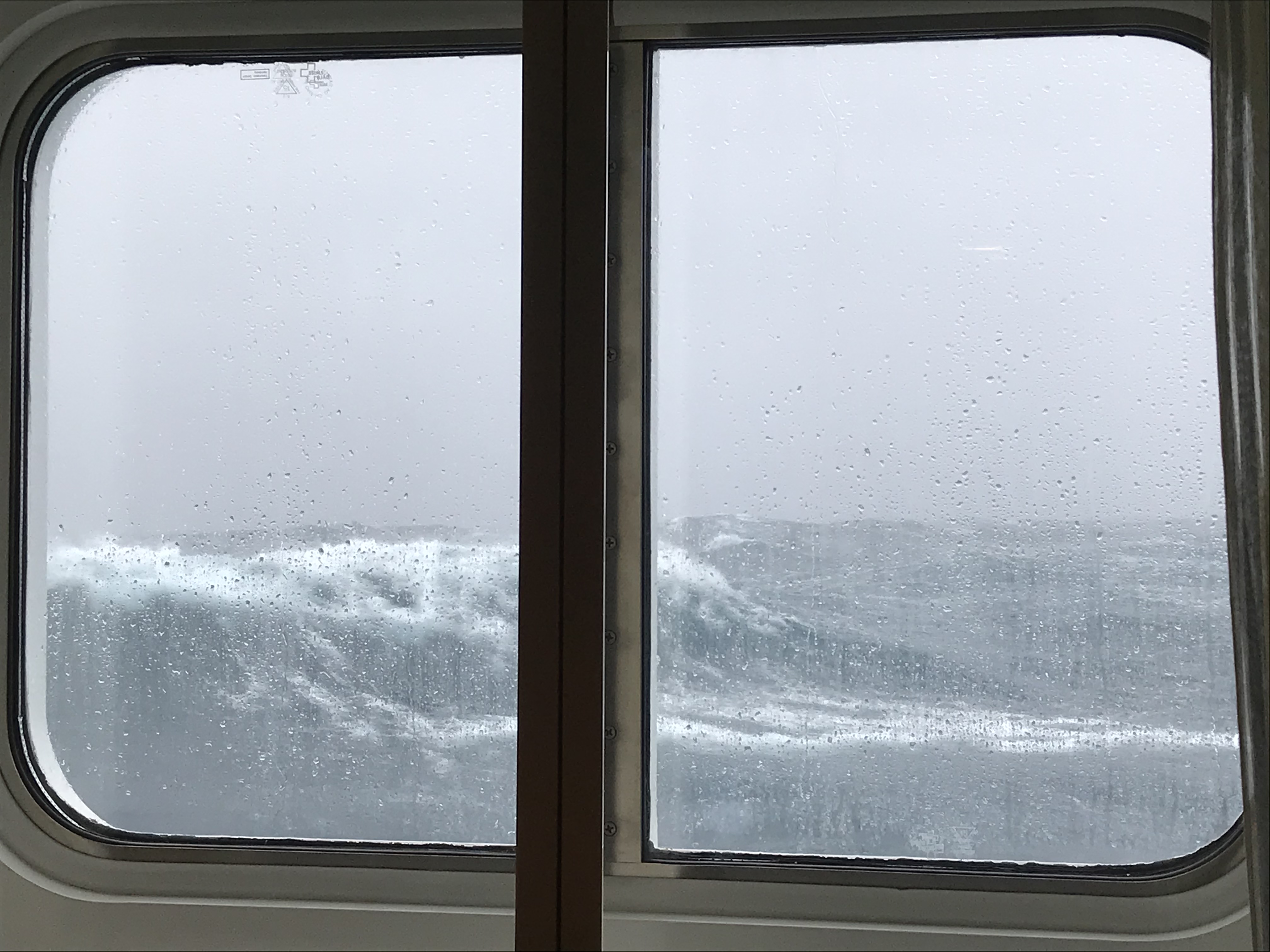 So, zwei Tage Sturm hinter uns. Hatte bisher mit Seegang keine Probleme aber sonntags war es zu heftig für mich. Zudem merkt man auf der kleinen Cara doch alles wesentlich mehr. Ein frühstücken im Markt musste ich Teller und Tasse festhalten da die reihenweise von den Tischen vielen und es ging in alle Richtungen hoch und runter, mal sah man nur himmel und dann nur Wasser. Irgendwann fing ich an zu schwitzen und beschloss bis nachmittags im Bett zu bleiben und Hörspiele/ Musik zu hören.
