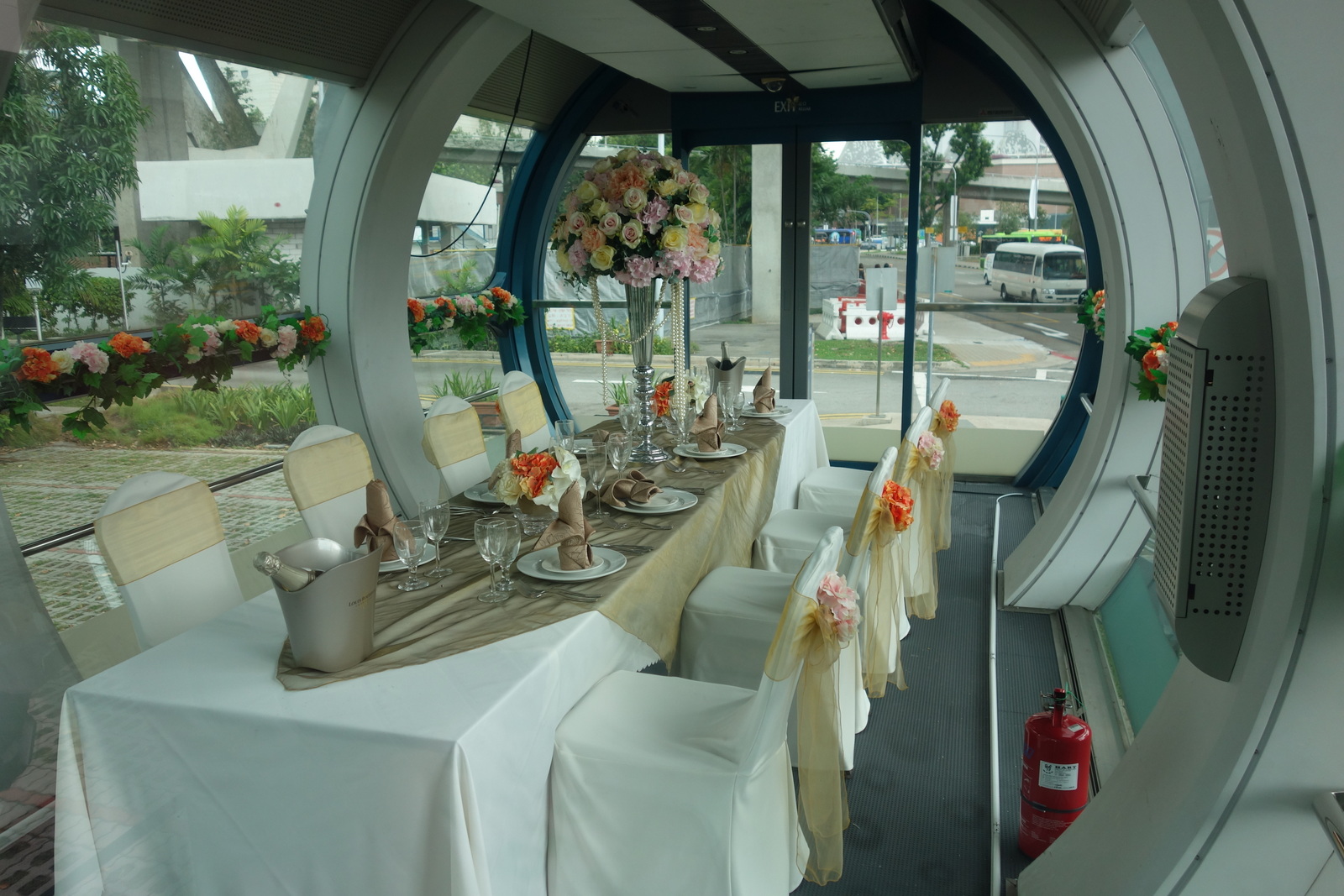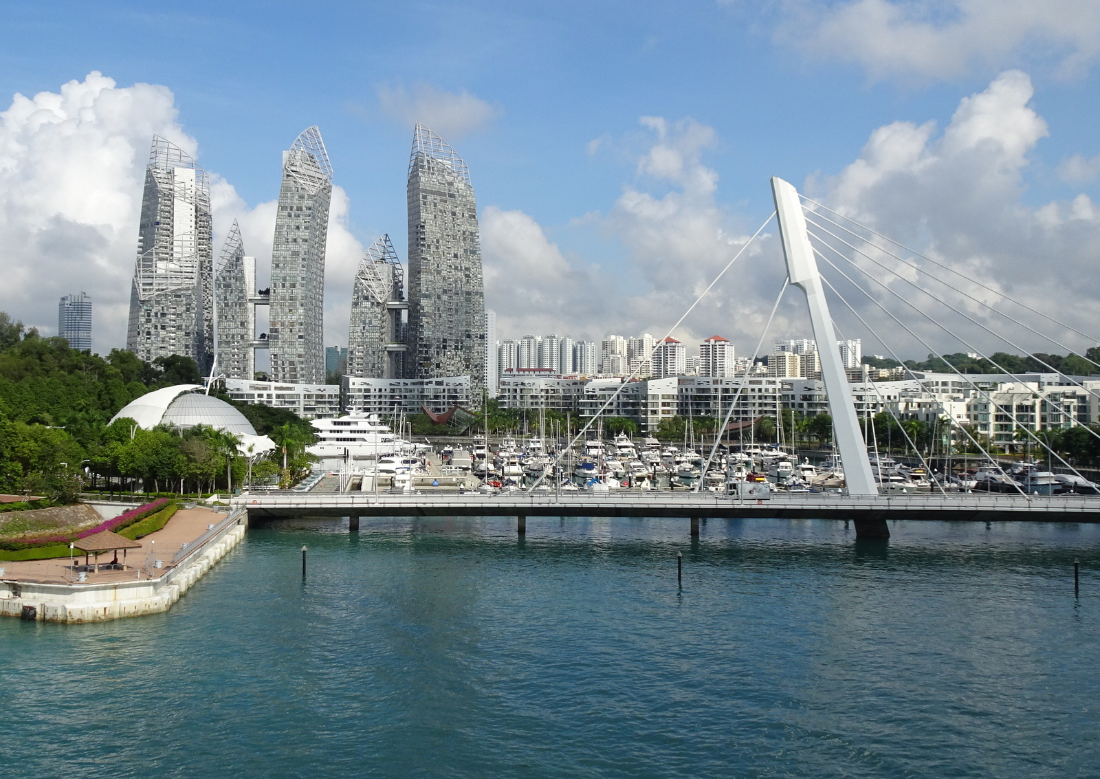 zu dieser Insel, eine von über 50 die dem weltgrößten Insel-Stadtstaat vorgelagert sind. Und diejenigen welche gleich z. B. zum Vergnügungspark, den Stränden dort oder den Universal-Studios wollen, haben es nicht weit, -die Zustiegsstation ist genau gegenüber von uns. Wir aber wollen gleich mit der U-Bahn Richtung Marina Bay und dem Riesenrad.