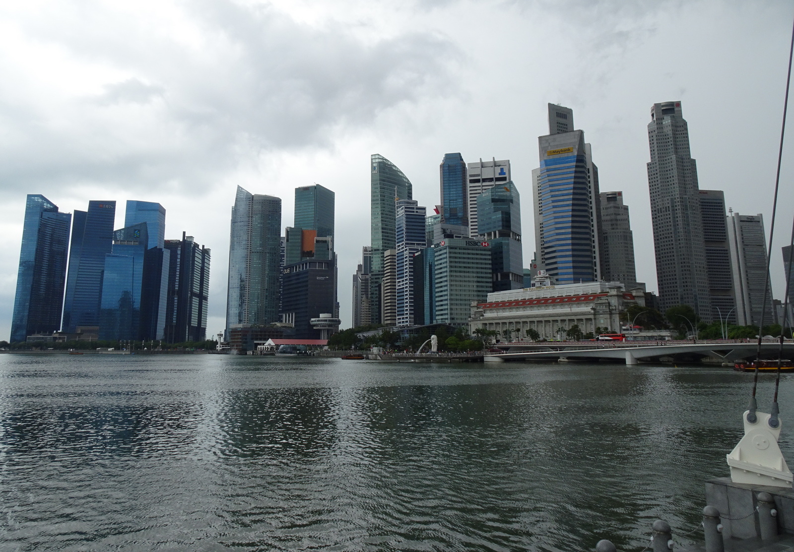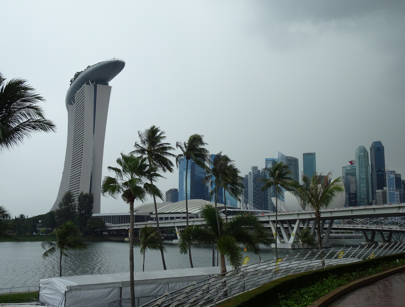 Und dann auch noch ein weiteres Plätschern, -es beginnt zu regnen… Na toll, erst kein Glück mit dem Rad und dann auch noch Pech mit dem Wetter. Plan B muss her. Etwas früher als geplant geht es nun durch noch leichten Regen zur Marina Bay.