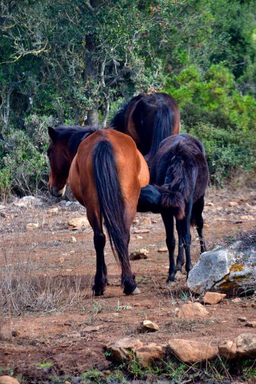 Von einem Lichtungsrand aus konnten wir in der Ferne eine weitere Wildpferdegruppe beobachten, die sich nicht von uns stören ließ. Das war´s dann leider mit der Giara de Gesturi, denn unsere Zeit lief ab … und schon fuhren wir hügelab bis wir einen mit einer Öffnung versehenen Felsbuckel erblickten.