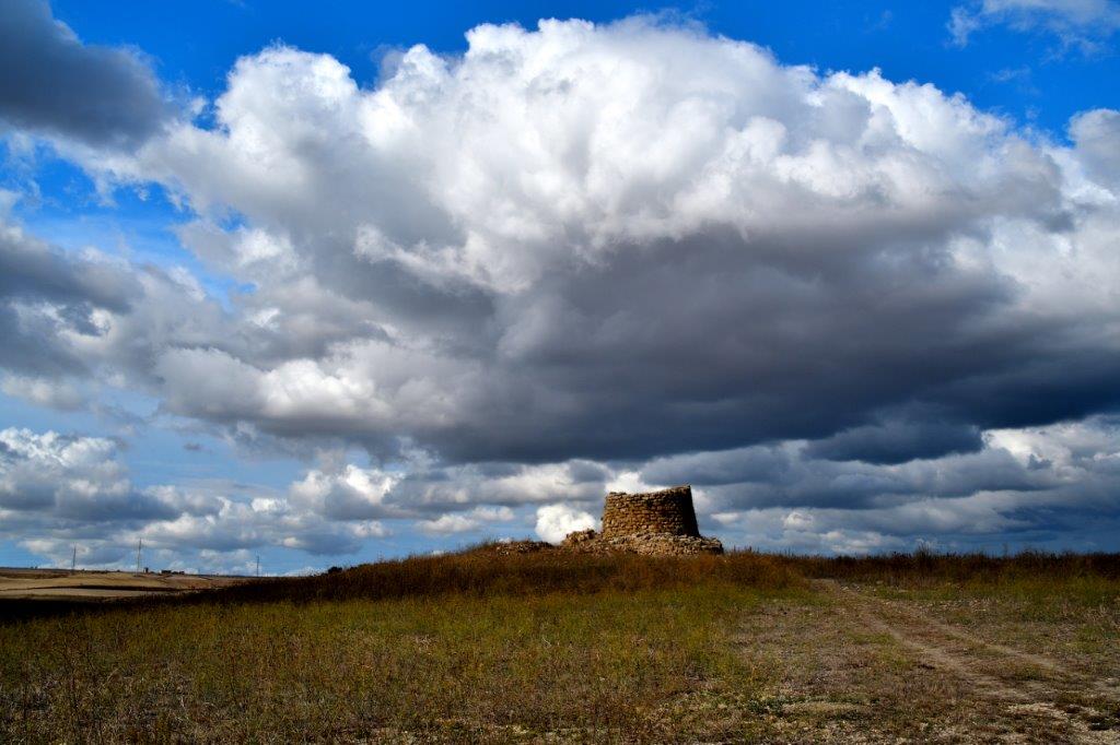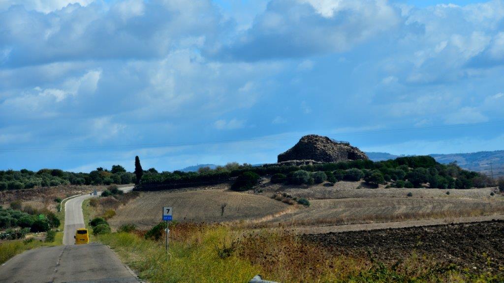 Die Landschaft veränderte sich nach dem Verlassen von Villamar. Es wurde trockener; Oliven- und auch Mandelbäume blieben zahlreiche Farbtupfer. Sie begleiteten uns bis wir den Ort Barumini erreichten, mitten in der Ebene Marmilla. Etwas außerhalb von Barumini war eine Anhöhe nicht zu übersehen.
