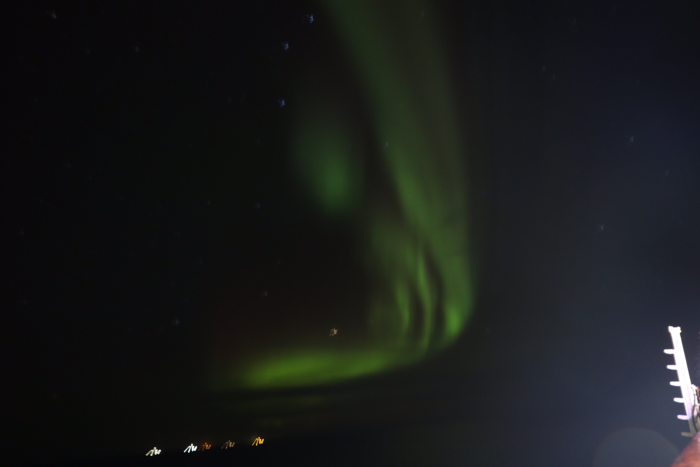 während des Abendessens im markttestaurant kam dann wieder die Durchsage Polarlichter zusehen. Essen tue ich meist in der zweiten Tischzeit im marktrestaurant da ist meistens recht leer ne daher ganz angenehm zu essen. Selbes spiel wie immer. Sachen holen, an Deck gehen und etwas mit dem Photo rumspielen.