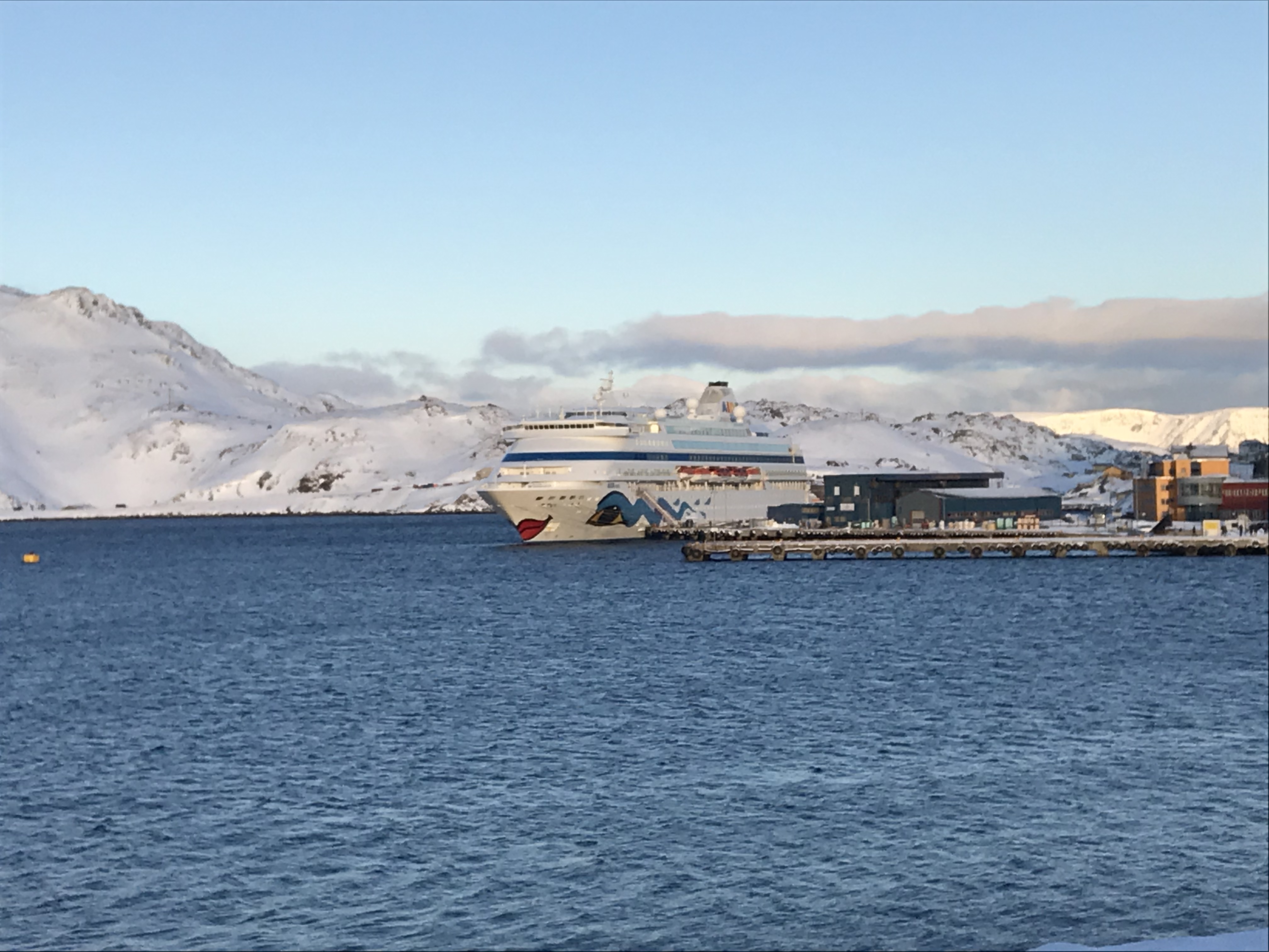 Was gibt es schöneres als den Tag mit Nordlichter zu beginnen? Wieder kam die Durchsage von der Brücke es seien Nordlichter zusehen. Ich war gerade in der Lambada bar wo die Band six spielte, die wie evtl. Schon erwähnt sehr klasse ist. Es war recht voll dort als glaub gegen 23:00 Uhr? wieder selbes Schauspiel begann, alles läuft los, holt was in der Kabine und ab an Deck. Die Polarlichter waren in einem Bogen über uns. Mal stärker und mal schwächer, jedoch nicht kräftig tanzend. Man sieht sie mit den Augen mehr als grauen lichtschleier, glaub richtig Spaß machen die ( zumindest die wir gesehen haben) mit Photo und Stativ. Dies ging dann bis etwa 0:30 Uhr. Also wer die Reise auch noch macht schaut euch vorher mal euren Photo genauer an ob ihr die Belichtungszeit und ISO ändern könnt. Ich bin Da auch nur Laie mir Macht aber das Knipsen Spaß und spiele gerne rum.