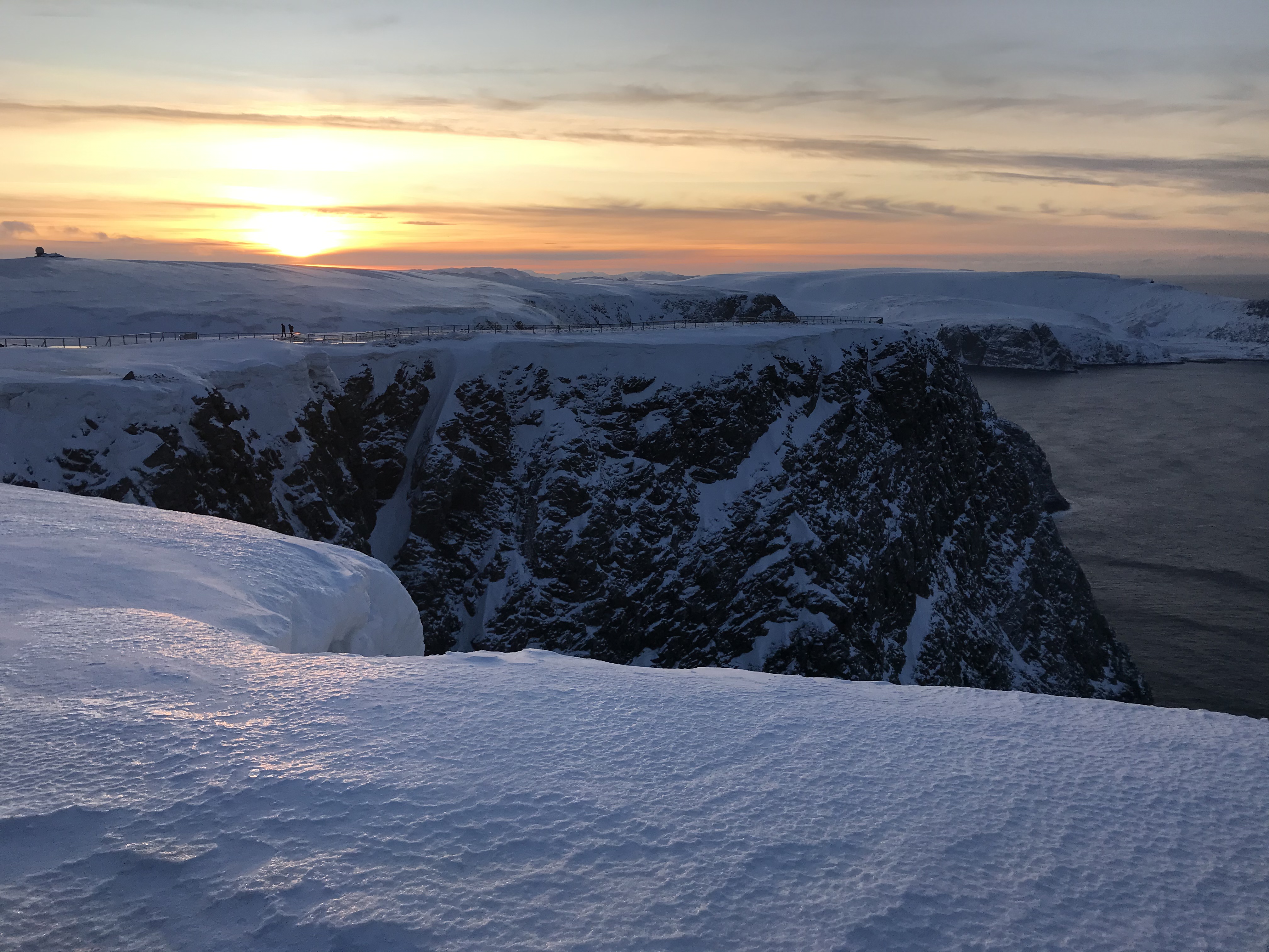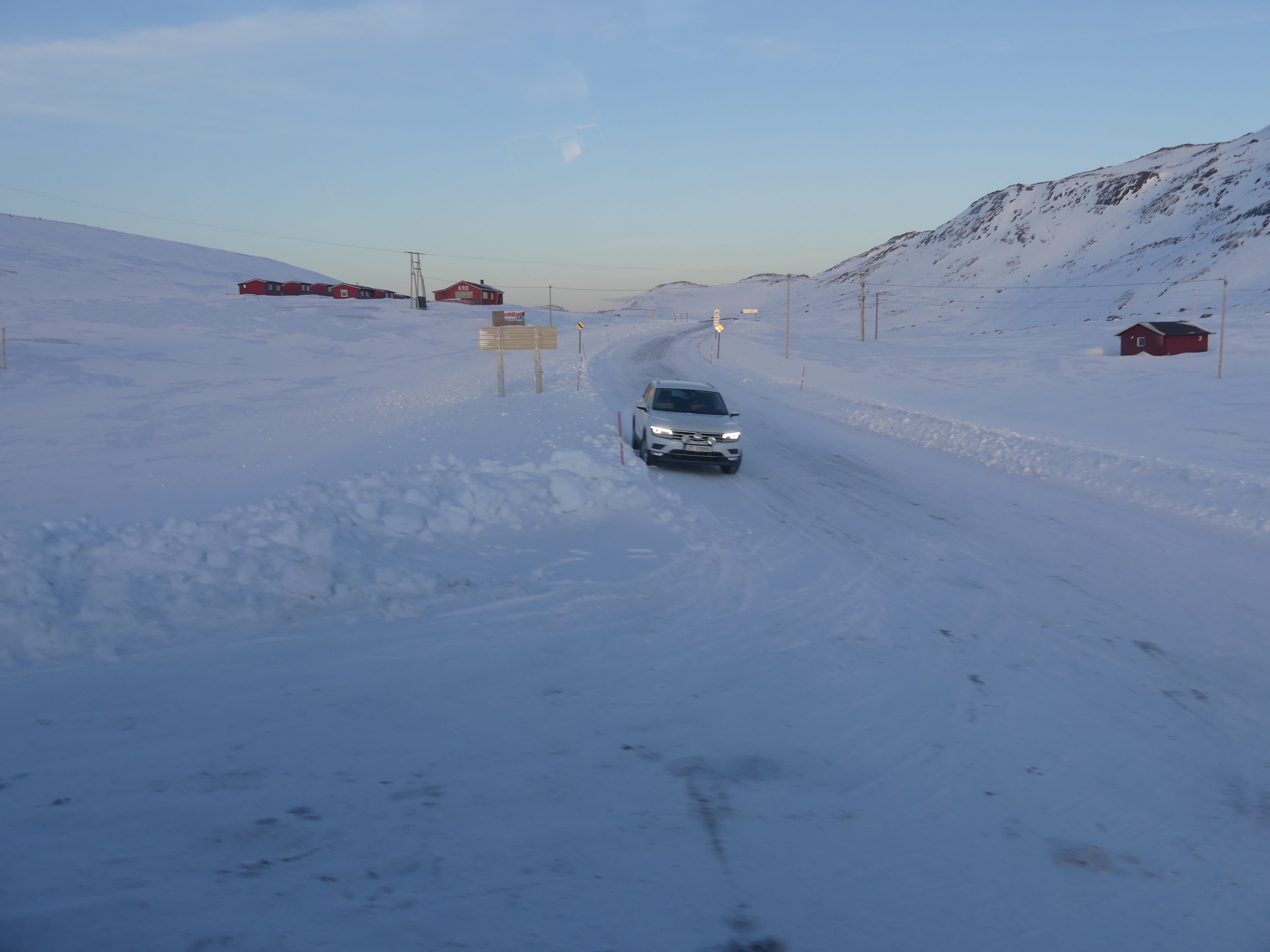 Nachmittags machte ich dann den Ausflug zum Nordkap mit, gebucht über Aida. Es wurden für Vormittag oder Nachmittag jeweils ein Ausflug angeboten, da ich im Sommer schonmal dort war entschied ich mich für den Nachmittag mit der untergehenden Sonne. Es weihte ein eisiger Wind dort aber war sehr schön. Es waren wohl um die 10 Busse, zurück zu Schiff fuhren wir im Konvoi mit einem orange blinkenden Räumfahrzeug zu Beginn und am Ende. Sah sehr cool aus so durch die langen Bergstraßen. Es ist zudem sehr eisig hier, so lange Schnee drüber liegt geht es gut man muss aber aufpassen. Die Crew durfte heute den ganzen Tag staubsaugen da jeder zig splittsteine mit an Bord bringt.