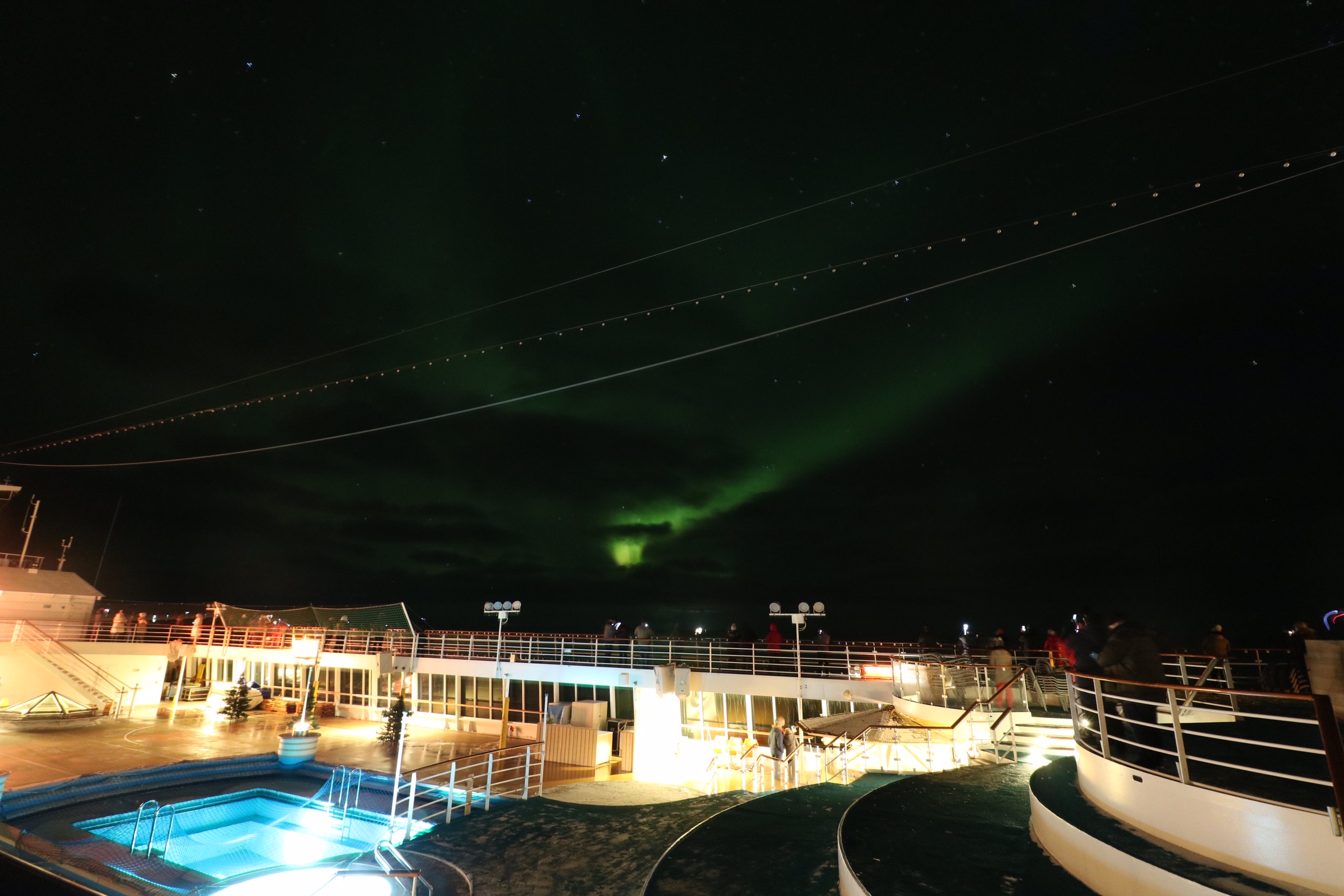 Auf dem Weg nach Tromsö kam gegen ca. 1:30 kam nochmal eine Durchsage bzgl. Polarlichter, es empfiehlt sich daher immer alles griff bereit zu haben. Natürlich auch wieder paar Bilder gemacht.