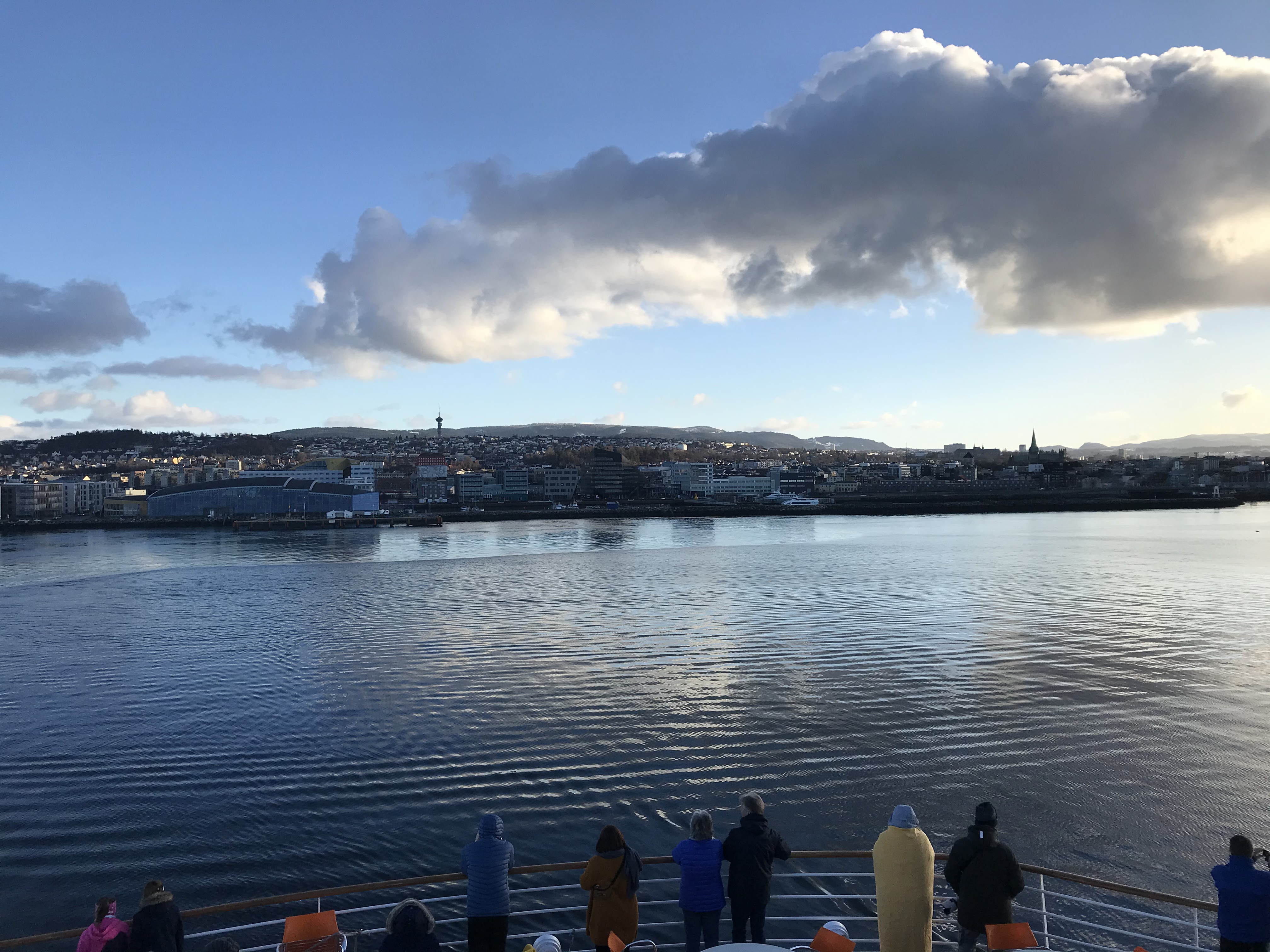 Es geht wieder südlich und heute sind wir in Trondheim. Ich war schonmal in Trondheim zuvor und kenne daher die Stadt schon. Hatte trotzdem beschlossen heute einen schönen stadtspatziergang zu machen. In Trondheim ist man sehr schnell in der Stadt und kann auf eigene Faust los. Im Hafen verteilten sie auch Stadtpläne mit einer möglichen Laufrute. Heute Morgen war viel Eis auf den Gehwegen und teilweise sehr rutschig. Gegen später kam die Sonne immer mehr zum Vorschein und es wurde schön, plus grade hat es auch.