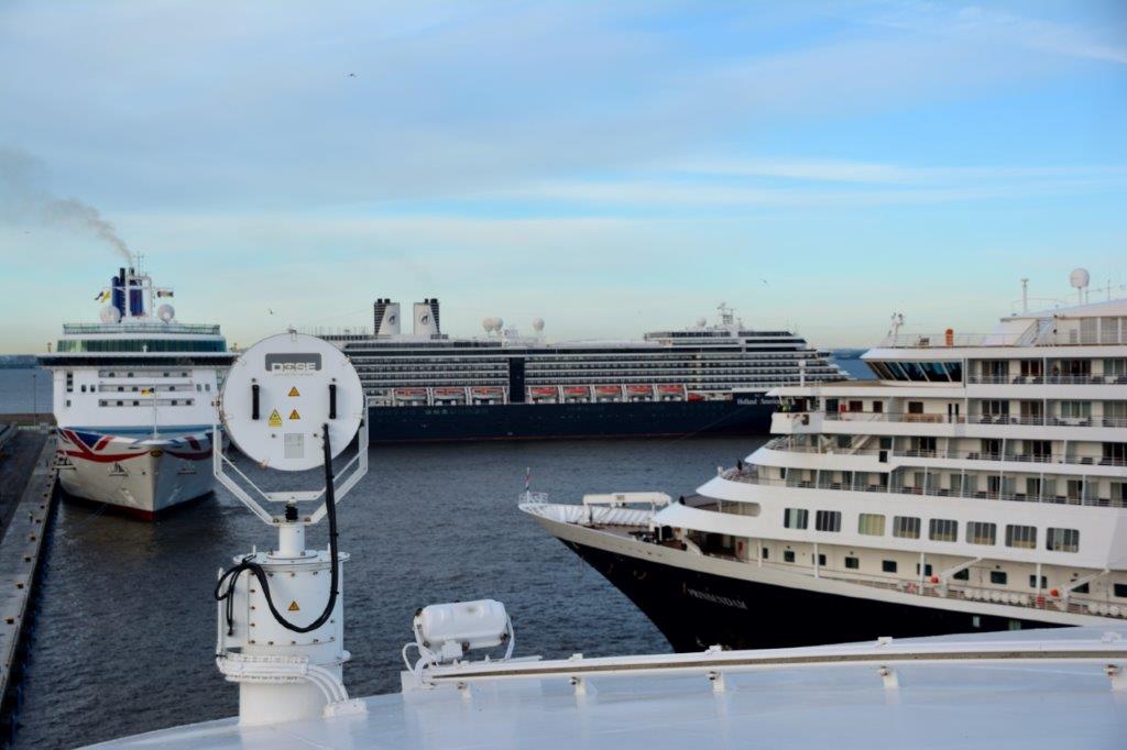 Der Bug der Celebrity Silhouette zeigte noch in Richtung unserer AIDAcara. Er wurde gekonnt ausgerichtet, so dass das Schiff schließlich vor der Zuiderdam lag. Die Touristenziele von St. Petersburg würden überschwemmt werden …
