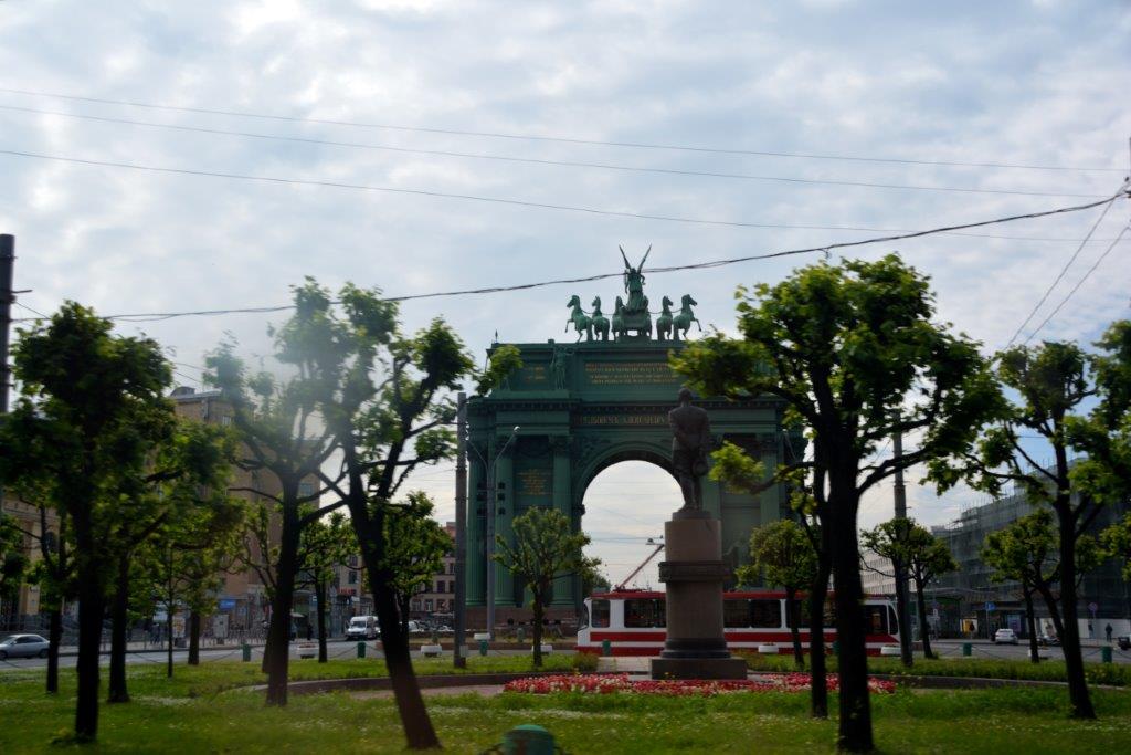 Erinnert er nicht an den Arc de Triomphe, der anlässlich von Napoleons Sieg über die Alliierten nach der Schlacht von Austerlitz zur Glorie der Grande Nation irgendwo in Paris hingesetzt wurde? Aber sicher – nur Napoleon wusste noch nicht, dass er 7 Jahre später in der Schlacht von Borodino die Hucke voll bekam. Der Anfang von seinem Ende. Leise grinsend beschloss der damalige Zar, zur Glorie von Mütterchen Russland seine Soldaten mit diesem Bauwerk zu ehren …