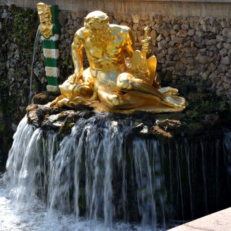 Viele vergoldete Statuen, Vasen und Flachreliefs machen dieses Wunder noch attraktiver. Hier stimmte alles – ein wundervolles Zusammenspiel von Umgebung, Bauten und Wasserkraft.