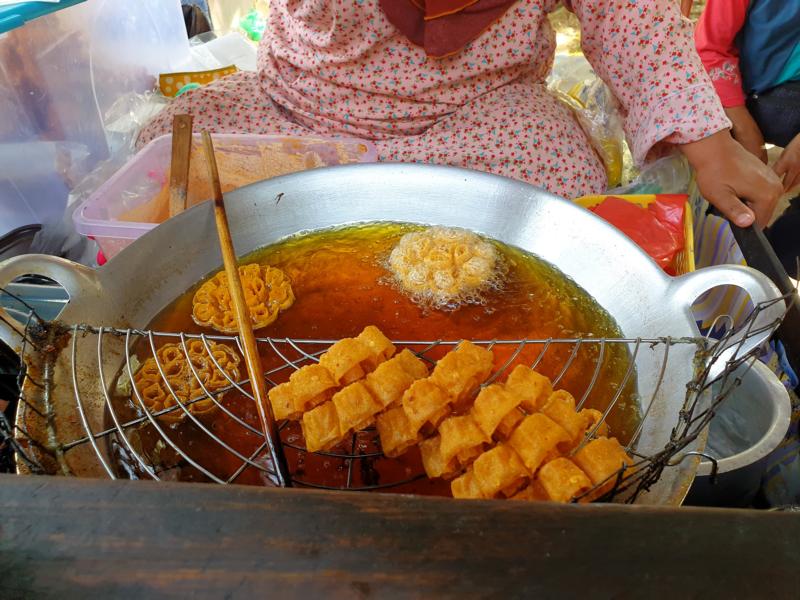 Ich trödle ein wenig umher, schau nochmal in eines der alten Holzhäuser hinein und dann lockt der Duft des frisch in Öl ausgebackenem Reisgebäcks mich an. Wie das knistert, wenn man vorsichtig abbeißt – so lecker. Nein, an Kalorien denken wir jetzt einfach mal nicht!!!