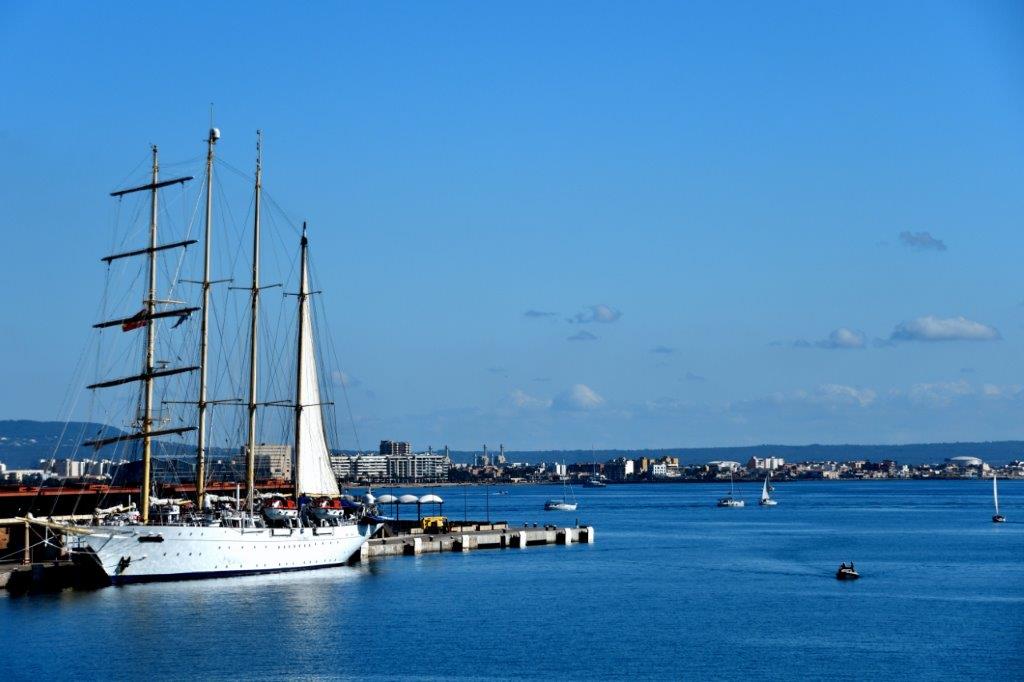Schön war es, ganz in Ruhe und ohne Zeitdruck die aufgehende Sonne und die Ruhe an Deck zu genießen. Unser Flugzeug startete erst um 18.15 Uhr – eine entspannte Zeit an Bord wartete auf uns. Zunächst das Frühstück. Danach das Sonnenbad ganz oben. Zwischendurch immer wieder die „Fotopirsch“. Die Star Clipper lag uns gegenüber. Nicht nur Fähren und Kreuzfahrtschiffe sorgten für Bewegung auf dem Wasser – auch die Wassersportler wollten diesen vielversprechenden Tag nutzen.