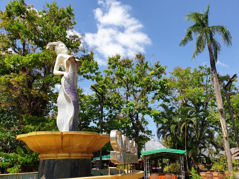 Auf der Weiterfahrt kommen wir ein Stück durch die Stadt und sehen auch den bekannten Surin Circle Clock Tower. Ist schon urig anzuschauen, das moderne dunkle Gebäude im Hintergrund und vorne ist der Turm zu sehen. "Hä ... hier ist ja noch Weihnachten", rutscht es mir bei der Dekoration raus. Andere Länder, andere Sitten - so wird es sein.