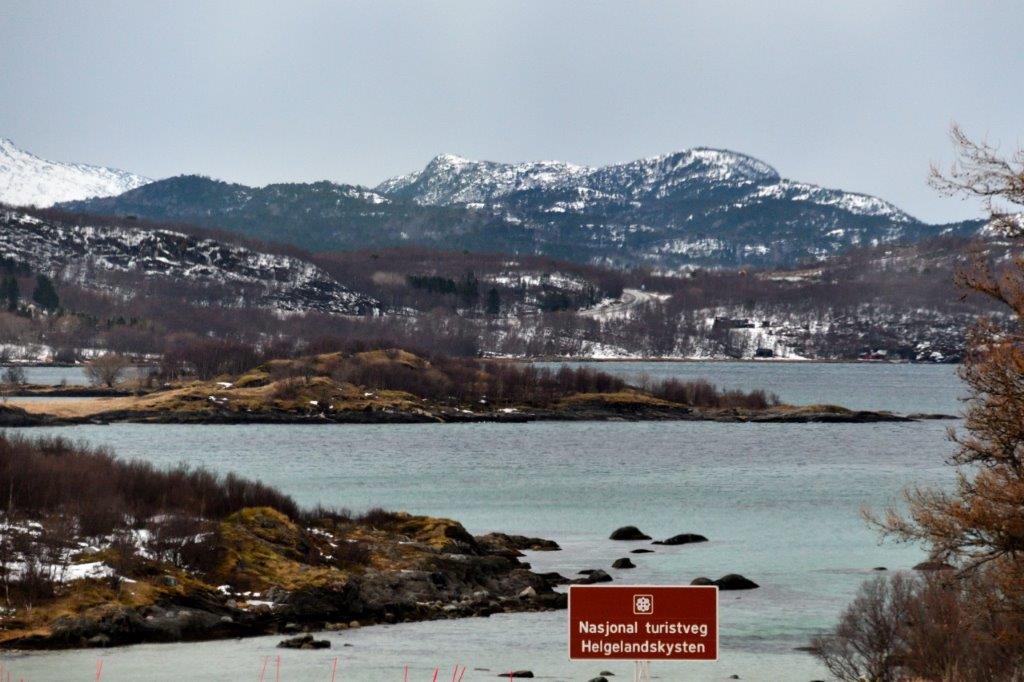Die Landschaft wurde richtig abwechslungsreich. Weniger Schnee und rechts von uns der Saltfjorden. Der Saltstraumen konnte nicht mehr weit sein – wir fuhren noch einige Minuten auf der 416 km langen norwegischen Touristenstraße Helgelandskysten