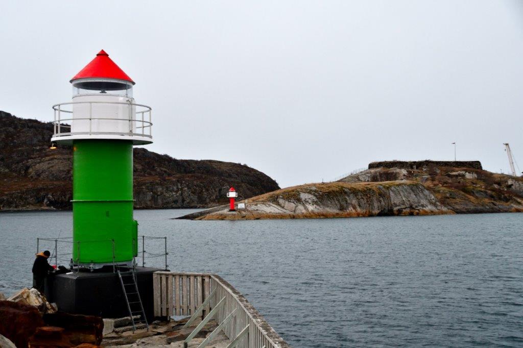 Auf der anderen Seite der Hafeneinfahrt stand das Pendant – rot-weiß-rot und dahinter auf der Landzunge Nyholmen das während des Napoleonischen Krieges erbaute und 1810 fertig gestellte Fort. Es sollte während der britischen Kontinentalsperre Schutz vor englischen Angriffen bieten; erfüllte jedoch nicht den ursprünglichen Zweck. Mit Sicherheit hatte die englische Flotte Respekt vor dem Fortungetüm, denn es kam zu keinem einzigen Angriff. Was machte man mit diesem Gebäude? Bereits fünf Jahre nach Fertigstellung wurden Kanonen und sonstige Waffen entfernt und der Trutzbau der Kommune übergeben. 1835 wurde er endgültig geschlossen. Ende des letzten Jahrtausends wurde das Fort incl. -gelände restauriert und der Öffentlich als Naherholungszentrum und für Open-Air-Konzerte im Sommer zugänglich gemacht.