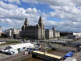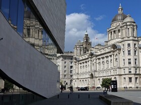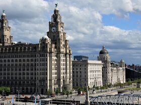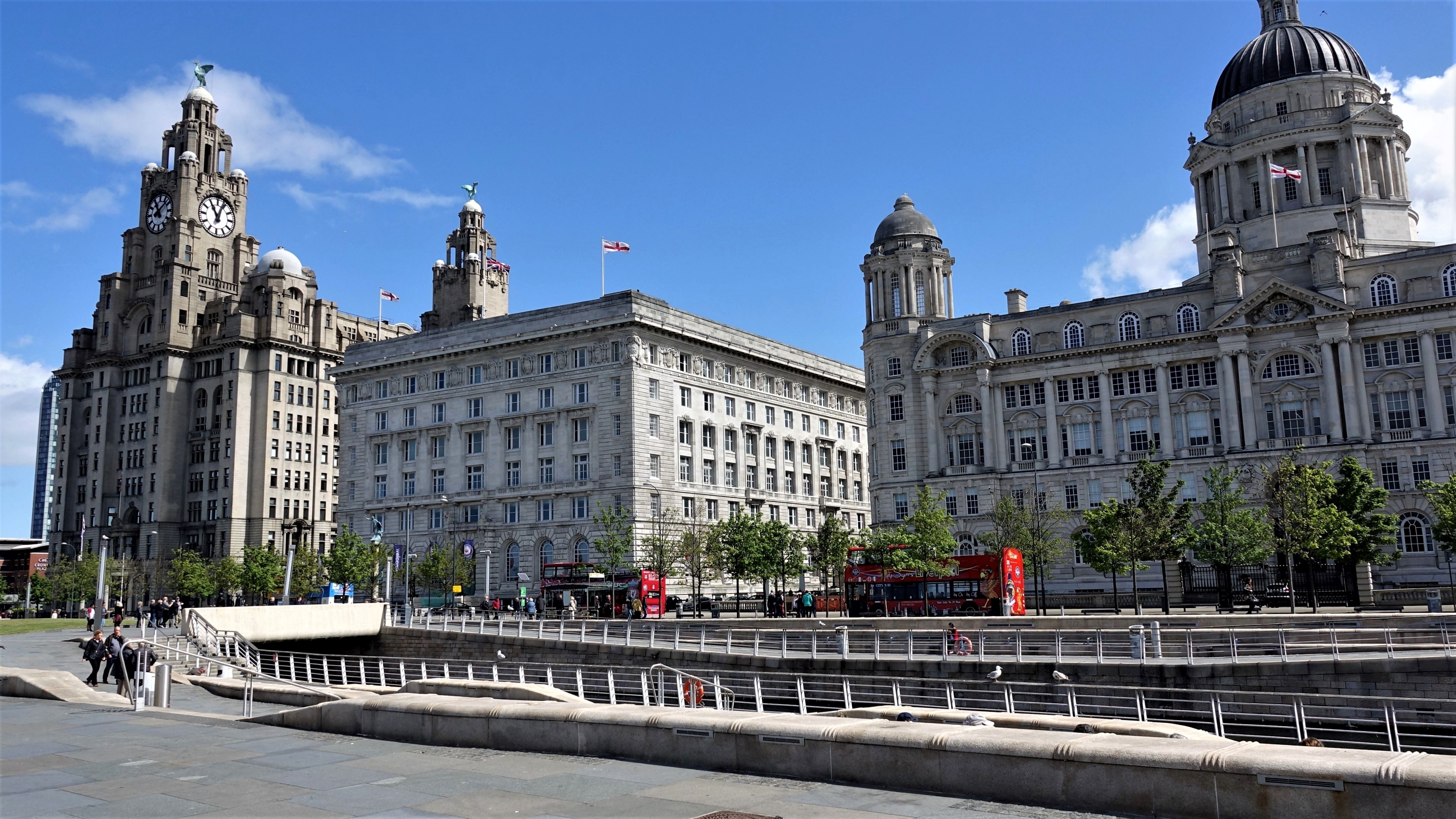 Die Uferfront „Pier Head“ gilt als Schokoladenseite der Stadt. Die drei Prachtbauten „Royal Liver Building“, „Cunard Building“ und „Port of Liverpool Building“ werden in Liverpool die drei Grazien genannt.