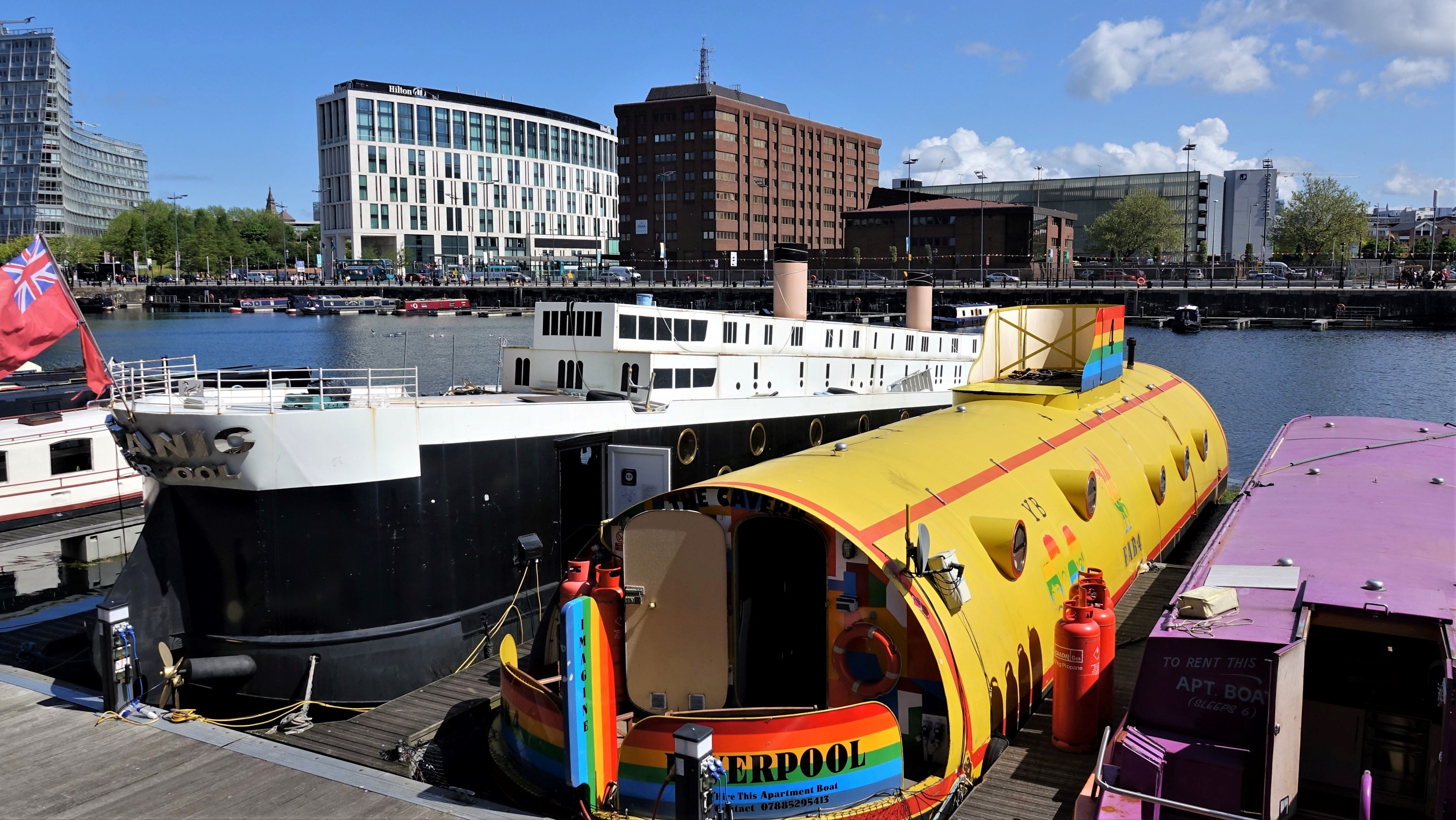 Am Pier vor dem „Atlantic Pavillon“ haben einige skurile Hausboote festgemacht. Das eine ist der Titanic nachempfunden, das andere ist eine Homage an das legedäre „Yellow Submarine“ der Beatles. Diese beiden und noch weitere sind als Apartment Boats zu mieten.