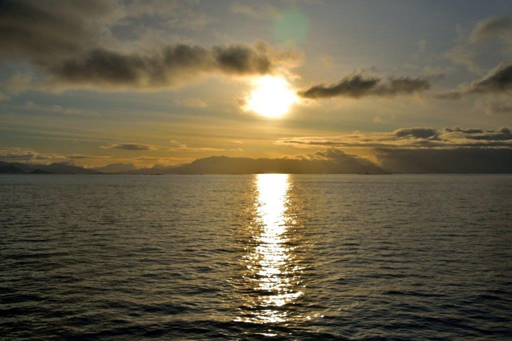 Goldiges Norwegen? Zumindest in diesen ruhigen Minuten für uns. Und nun das Festland – ohne Gegenlicht: