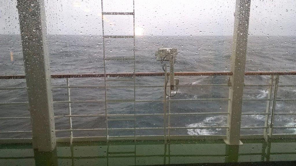 Beim x-ten Kaffee nahmen wir den Morgensegen unseres Kapitäns mit. Ob er sich in den Ausläufern des von den Brexit-Inseln kommenden Tiefs wohl fühlte? Wahrscheinlich ja, denn das Schlimmste war am frühen Morgen überstanden. Er hatte solch eine von ihm und der Besatzung mit Bravour bemeisterte schwere See noch nie erlebt! Die Wellen hatten eine „beträchtliche“ Höhe (Originalton Kapitän Müller) – was das auch immer heißen mag. Die AIDAcara war gut durchgekommen. Sie hatte sich hervorragend bewährt, auch wenn die auf dem Rundgang Deck 6 landenden Brecher das Seewasser durch die winzigen Lücken der in die Innereien führenden Türen drückte. Nass war´s an den Eingängen. Handtücher wurden nicht für Liegenreservierung sondern für das Aufsaugen der Feuchtigkeit zweckentfremdet.