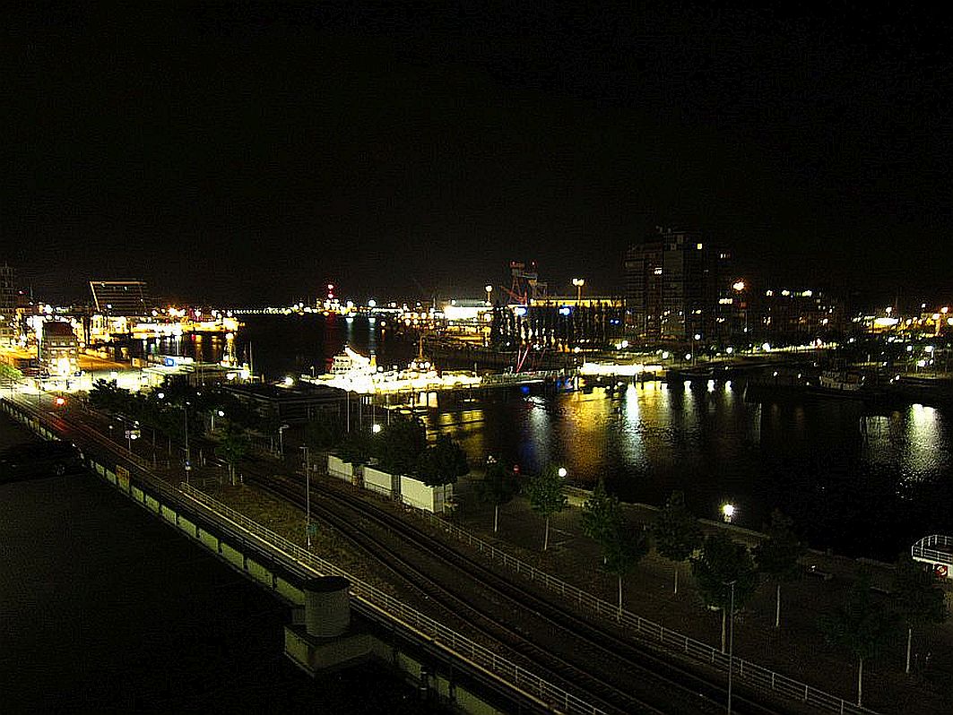 Gut habe ich geschlafen. Fast ein bisschen wie in meinem AIDA-Bett. Doch etwas fehlt: der Blick aus dem Bett hinaus über den Balkon aufs weite Meer. Gut, das weite Meer würde ich jetzt, gegen 03:30 Uhr, ohnehin nicht sehen, denn noch ist es draußen dunkel. Ja, etwas fehlt. Doch etwas ist dafür noch geblieben - ein leichtes Schaukeln, das ich empfinde, während ich mich in meinem Bett aufsetze, um einen kurzen Blick auf das Lichtermeer entlang der Kieler Förde zu erhaschen. Nein, "landkrank" bin ich nicht. Und diese "Fata Morgana" des vom Organismus vorgetäuschten Schaukelns verschwindet garantiert im Laufe des Tages.