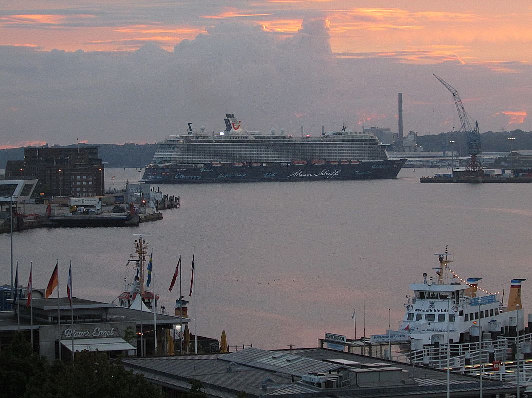 Normalerweise ist es gerade an einem Sonntag und erst recht im Urlaub noch viel zu früh, um schon aktiv zu sein. Vielmehr sollte man sich einem "Rendezvous mit Kopfkissen & Bettdecke" widmen. Doch von meinem Fenster aus habe ich noch in dieser Stunde ein Rendezvous ganz anderer Art: "Mein Schiff 4" wird einlaufen und das möchte ich natürlich nicht versäumen.