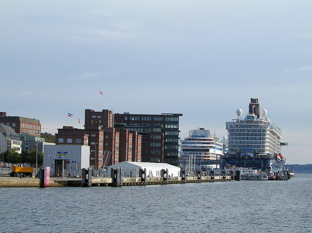 Seite an Seite und Bug neben Bug präsentieren sich die beiden Traumschiffe des heutigen Tages in Kiel. Natürlich werde ich heute Abend rechtzeitig von meinem Ausflug zurück sein, um diese beiden Schönheiten wieder zu verabschieden, bevor auch ich ein paar Stunden später dann wieder einmal schweren Herzens Abschied vom Meer nehmen muss.