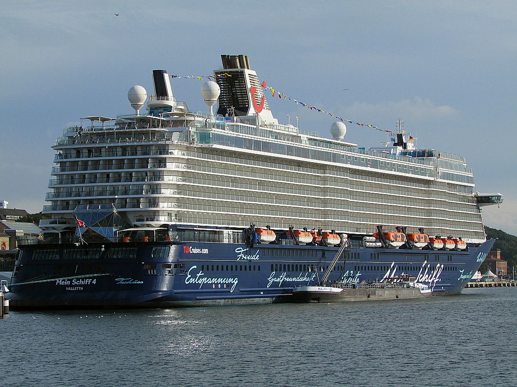 Während sich an unserer Backbordseite die "volle Breitseite" von "Mein Schiff 4" ins Blickfeld schiebt …