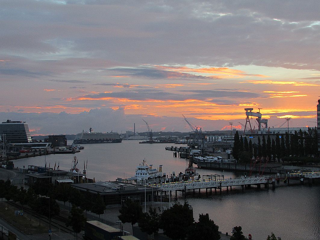 Also ein paar Mal kurz blinzeln, sich sammeln und zurückkehren ins "Hier und Jetzt" dieses August-Sonntags 2018 … Hach ja, wir nähern uns den so von mir geliebten Kreuzfahrtschiffen, die ich im heutigen Morgengrauen bereits von meinem Hotelzimmerfenster aus begrüßt habe.