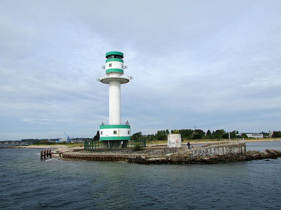 Schon beinahe ein Wahrzeichen inmitten der Kieler Förde und auch immer mal wieder gern als Hintergrund des Wetterberichts der abendlichen RTL-Nachrichten verwendet, passieren wir backbordseitig: den grün-weißen Leuchtturm Friedrichsort.