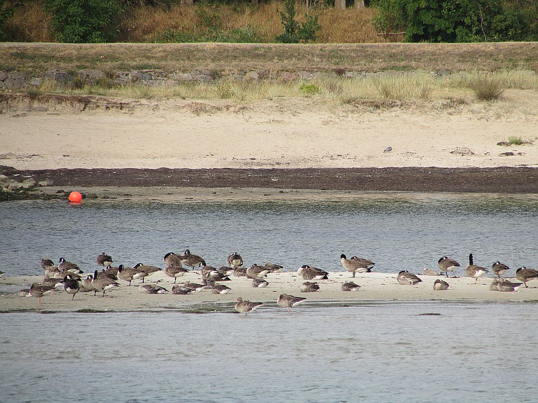 Vom Ort Falckenstein, der uns nunmehr direkt vorausliegt, sieht man wenig. Allerdings gibt es dort einen schönen kleinen, einladend aussehenden Strand, welcher von etlichem träge in der Sonne dösendem Wassergetier bevölkert wird: