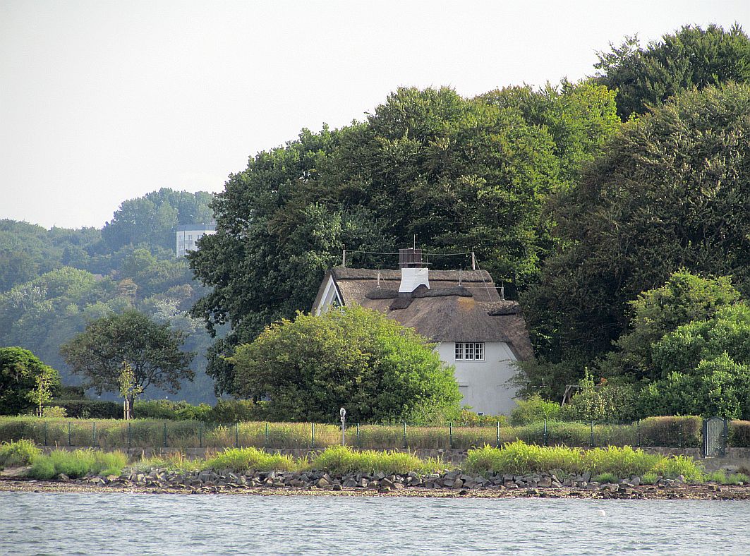Hinter jedem neuen Anleger verstecken sich beschauliche größere und kleinere Orte. Sich hinter hohen Bäumen versteckende Reetdachhäuser säumen die Fördeufer. Zwar habe ich das alles vor einer Woche schon mal gesehen und auch erst gestern früh bei unserer Rückkehr mit AIDAluna. Doch dieses Mal ist meine Perspektive eine andere. Während ich die Aussicht ein paar Decks höher von Bord meines schönen Kussmundschiffes genossen habe, befinde ich mich jetzt quasi auf Meereshöhe.