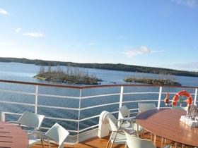 Wir standen früh auf - kein Problem, denn uns wurde wieder eine Stunde geschenkt - , denn wir wollten keinesfalls die Einfahrt durch die Stockholmer Schären verpassen. So standen zumindest wir Erwachsene mit einem Becher Kaffee an der Reling und genossen, was uns da geboten wurde.