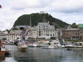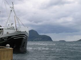 Da Ålesund sich über einige Inseln verteilt, stoßen wir unweigerlich immer wieder ans Wasser. So auch dort, wo die Postschiffe der Hurtigruten anlegen.