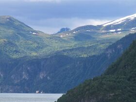 Der Nordalsfjord ist ein Ausläufer des großen Fjords, wo wir ihn bei Eidsdal per Fähre überqueren, um uns dann in Richtung Geiranger zu orientieren.