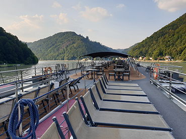 Außerdem war der "Brücken"-Aufbau auf dem Sonnendeck und es standen Leih-Fahrräder bereit. Die Landestegs und auch die Rettungswesten waren ebenfalls auf dem Sonnendeck untergebracht.
