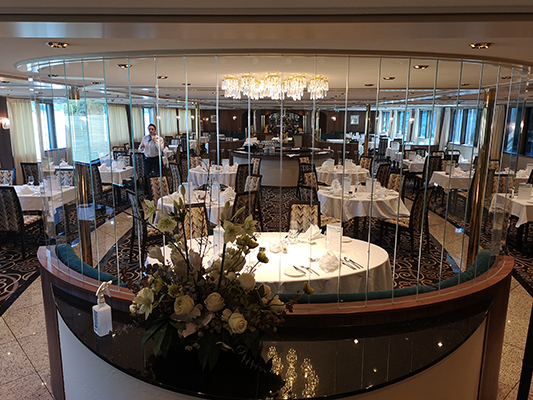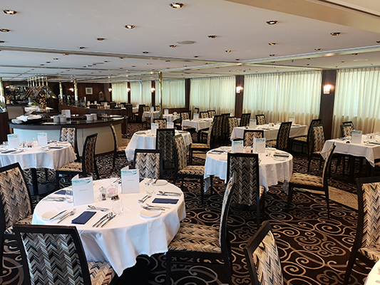 Hinsichtlich Corona gab es die Bestimmungen, dass beim Umherlaufen auf dem Schiff ein Mund-Nase-Schutz getragen werden muss. Außerdem ist überall Einbahnstraßenverkehr mit aufgezeichneten Pfeilen. Das Schiff war mit 122 Leuten bei maximal möglichen 180 Passagieren belegt.
