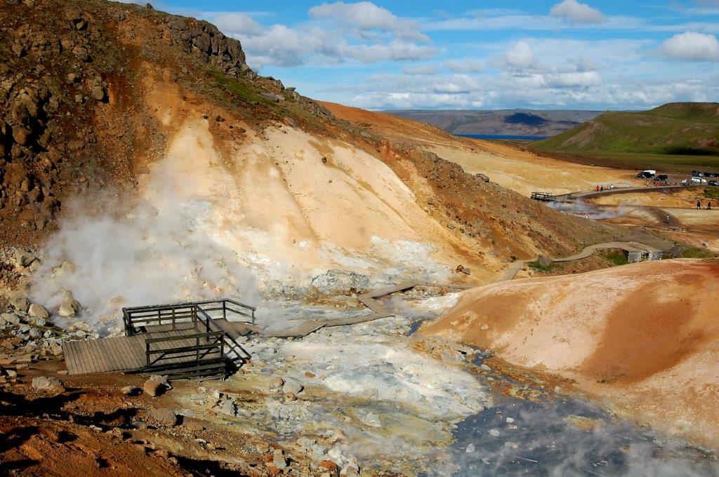 und kamen dann zum großräumigen Geothermalgebiet von Seltún, das wir per pedes in Augenschein nahmen.