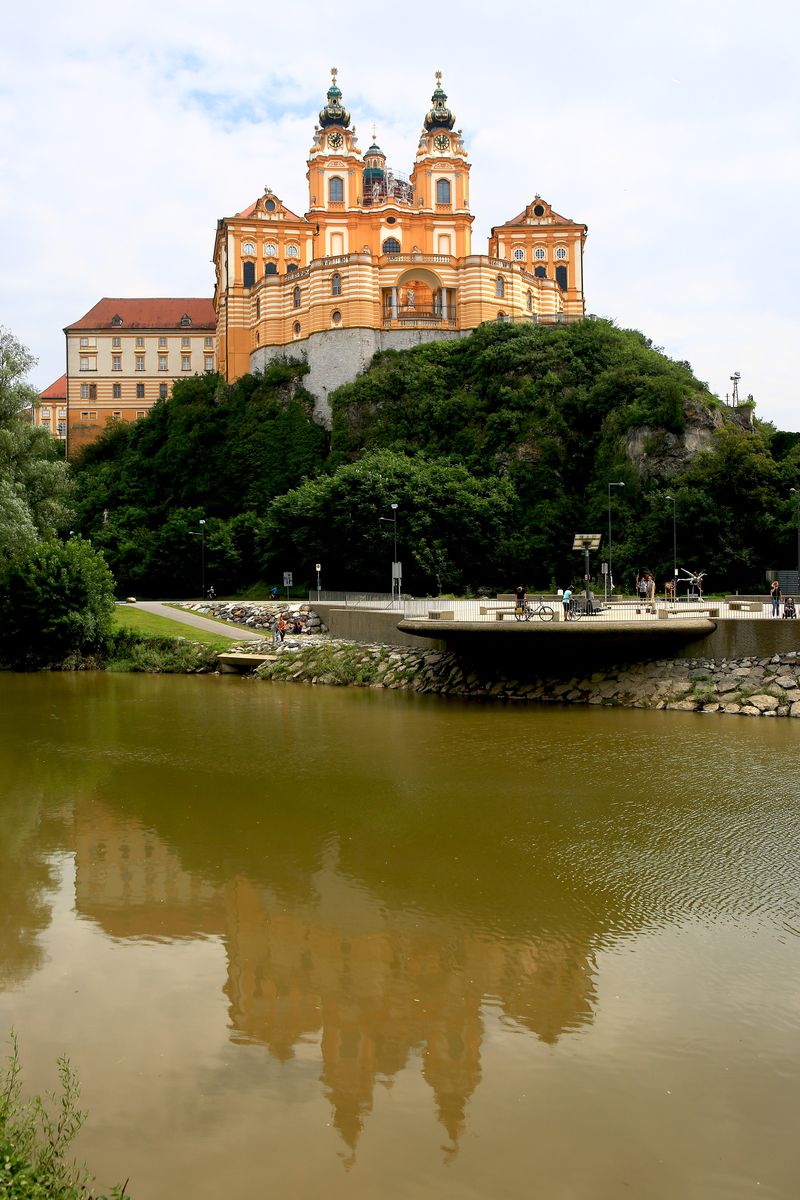 Anschließend konnten wir noch alleine zum Stiftsgarten gehen. Wer wollte, konnte nun mit dem Bus zurück um Schiff fahren, ansonsten konnte man bequem zu Fuß in die Altstadt von Melk laufen und von dort weiter zum Schiff. Melk ist ein schönes Städtchen und rund um den Rathausplatz auch sehenswert. Beeindruckend ist natürlich, wie das riesige Stift hoch über der Stadt liegt. Etwas schade war, dass die Kuppel des Stifts im Gerüst stand – aber so ist das halt manchmal.