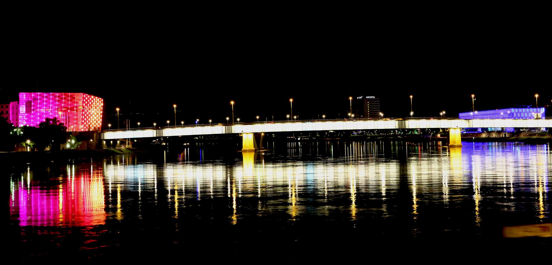 Nach dem letzten tollen Abendessen kamen wir erneut an Linz vorbei. Linz im Dunklen ist wirklich sehenswert, da die Nibelungenbrücke sowie das Lentos Kunstmuseum schön beleuchtet sind und das Ars Electrica-Center auf der Gegenseite in unterschiedlichen Farben illuminiert wird.