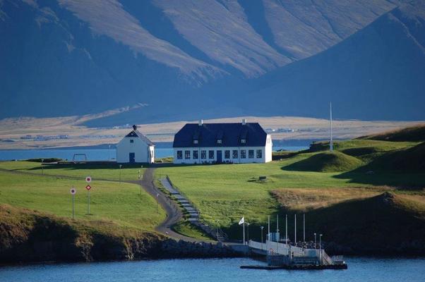 Auch wenn wir wieder „schiffwärts“ Richtung AIDA fuhren, war dieser erlebnisreiche Tag noch nicht zu Ende. Wieder in Reykjavík „bestiegen“ wir Perlan (= Perle), ein auf einem über 60 m hohen Hügel entstandenes Gebäude aus sechs riesigen runden Wassertanks, in denen insgesamt 24.000 m³ 80 Grad heißes Wasser gespeichert sind. Über den Tanks wurde eine sechseckige Plattform errichtet, darüber eine 14 m hohe gläserne Kuppel. In dem Gebäude schießt alle paar Minuten ein computergesteuerter, an einen Geysir erinnernder Wasserstrahl 15 m in die Höhe. Weiterhin gibt es eine Cafeteria, ein Restaurant, Ladenlokale, einen Konferenz-/Lehrbühnenraum etc. Die Plattform ist frei zugänglich; von dort genossen wir einen herrlichen Rundblick auf das erstaunlich grüne Reykjavík.