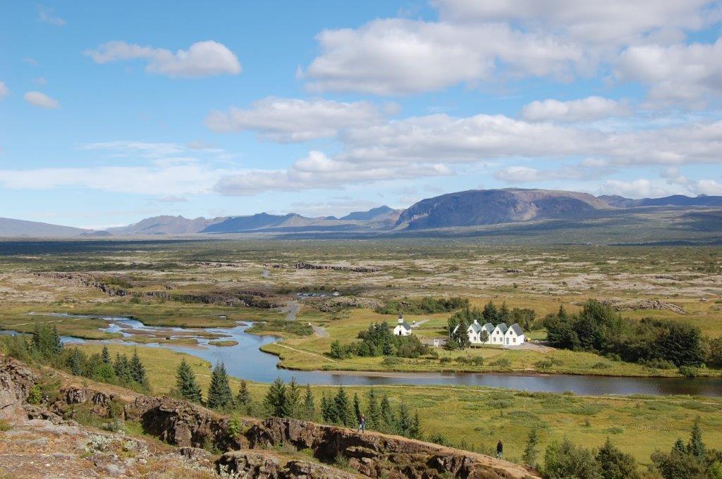 Unser vorletztes Ausflugserlebnis dieses Tages führte uns nach 1 ¼ Stunden Fahrt zum ersten isländischen Nationalpark Þingvellir, die „Ebene der Volksversammlung“. Hier fand 930 das erste alljährliche Alþing – das Treffen der isländischen Goden als Vertreter der 13 lokalen Þingverbände und der Familienoberhäupter – statt. Dort wurden Streitigkeiten geschlichtet, Gesetze erlassen, Recht gesprochen und Urteile gefällt. Noch heute wird Þingvellir als nationales Heiligtum betrachtet, was sich u.a. darin ausdrückt, dass an diesem Ort 1944 die Republik Island gegründet wurde.