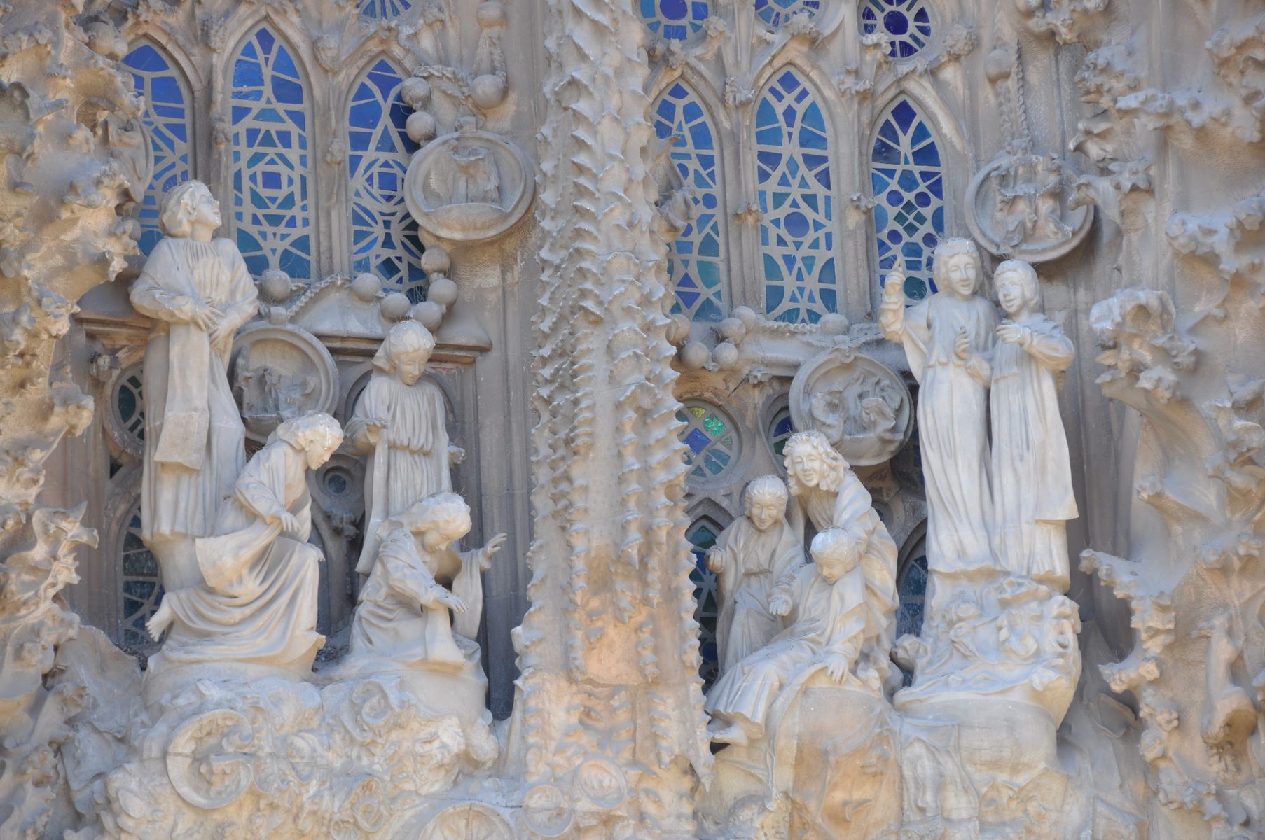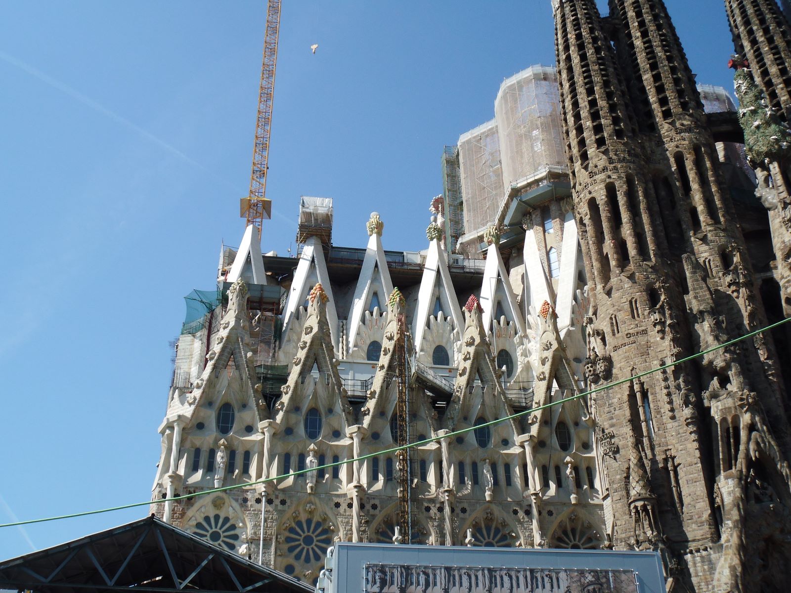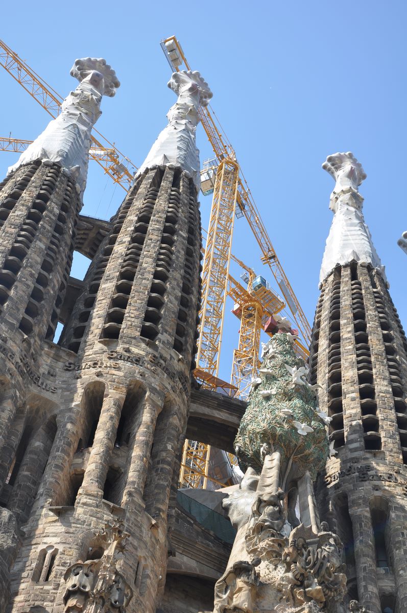 Mit der U-Bahn geht es weiter zur Sagrada Familia. Leider haben wir von zu Hause aus keine Tickets reserviert, denn die Schlange am Eingang ist mal so richtig lang. So entscheiden wir uns gegen einen spontanen Besuch. Wir hoffen, Antoni Gaudi, dessen innovative Architektur die Basilika bis heute prägt, wird es uns verzeihen. Unsere "Jungen" tun es auf jeden Fall. Ich meine ein leichtes Aufatmen zu hören, als wir beschließen, diese seit rund 160 Jahren dauernde "Baustelle" nur von außen zu umrunden.