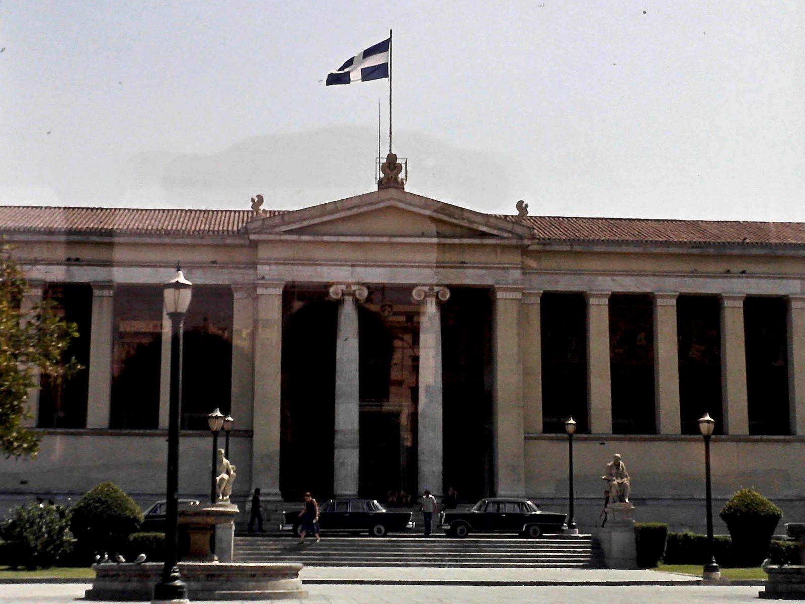 Der Tag 5 brach an. Aus dem Bett gewälzt, fertig gemacht und nach dem Frühstück auf zum nächsten Ausflug. Wir wollten einem Erfolgssong von Mireille Mathieu Lügen strafen. Für uns hieß es nicht „Akropolis adieu“ sondern „Bienvenue Akropolis“. Doch so weit war es noch nicht. Zunächst stand eine Stadtrundfahrt auf dem Programm. Oder eher eine Staurundfahrt. Aus diesem Grunde wurde das aus dem stehenden Bus geschossene Foto der Nationale und Kapodistrias-Universität einigermaßen scharf.